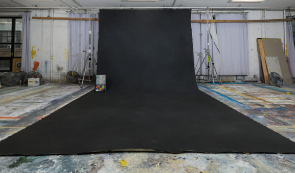 Deep charcoal black with mottled texture. Slightly drapable. Pantone Colors: Black 7U, 433U, 446U