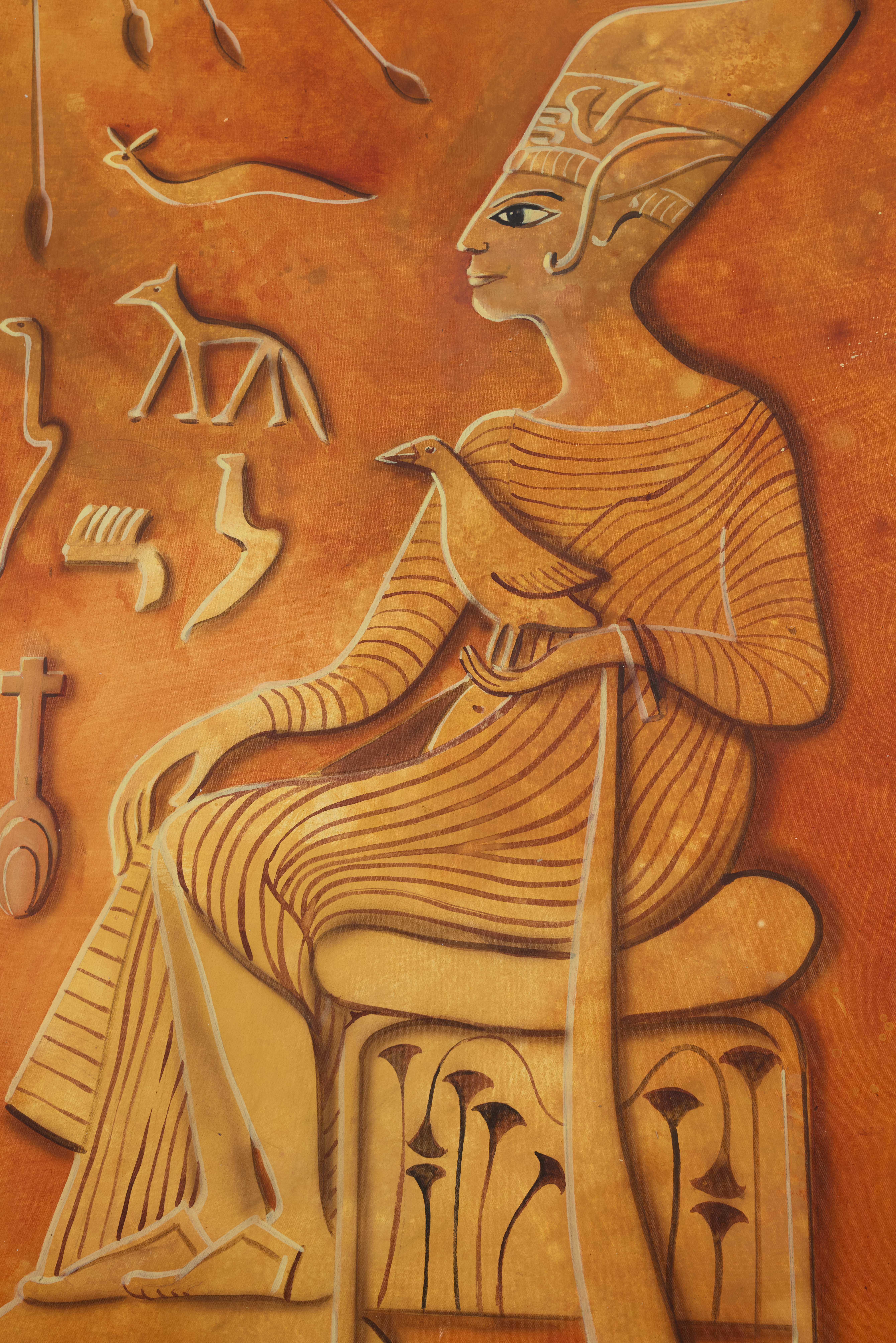 Ancient Egyptian mythology. Eye of Ra. God of the sun. Symbolic wall carving. Historic sculpture. Refer to 1201B.