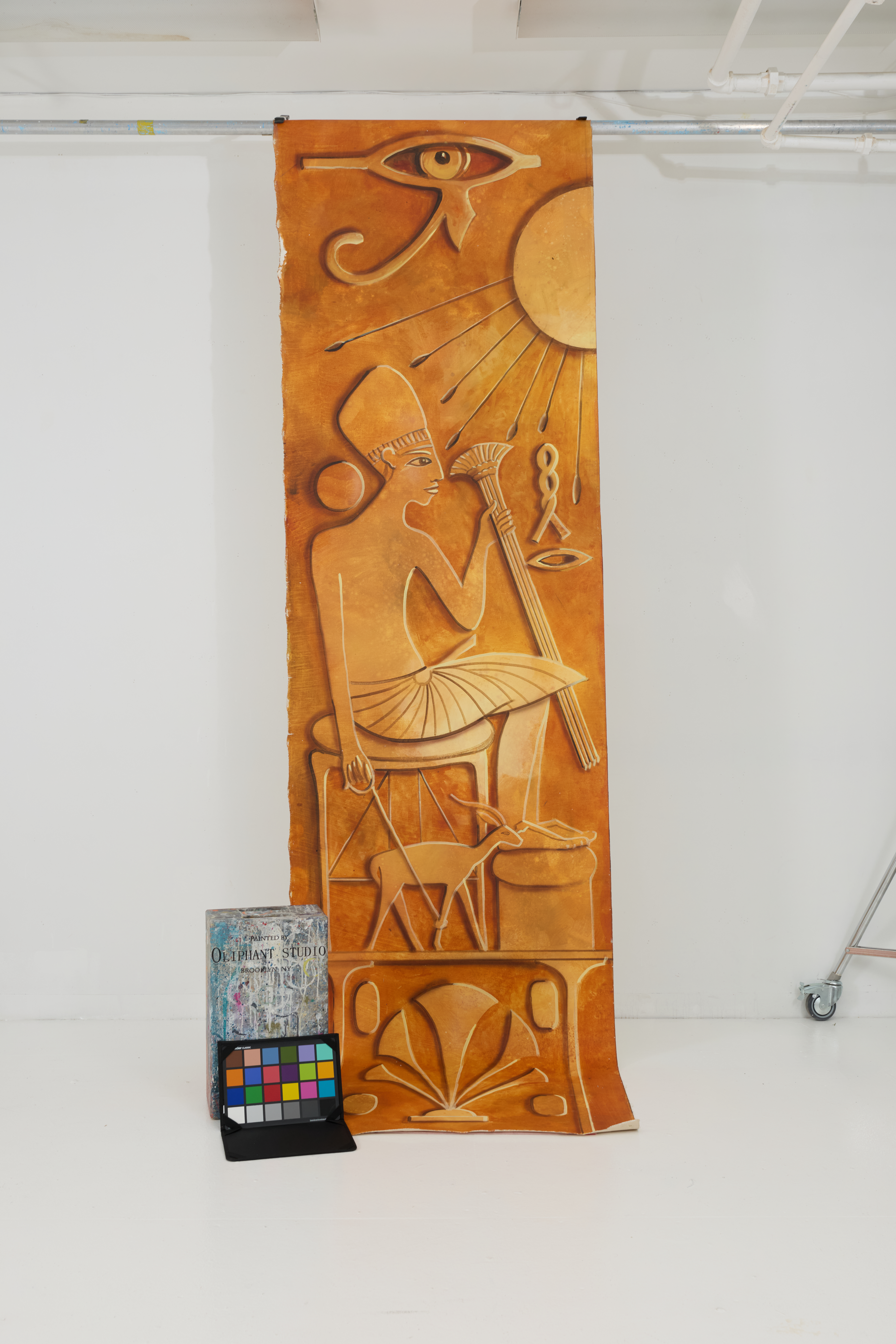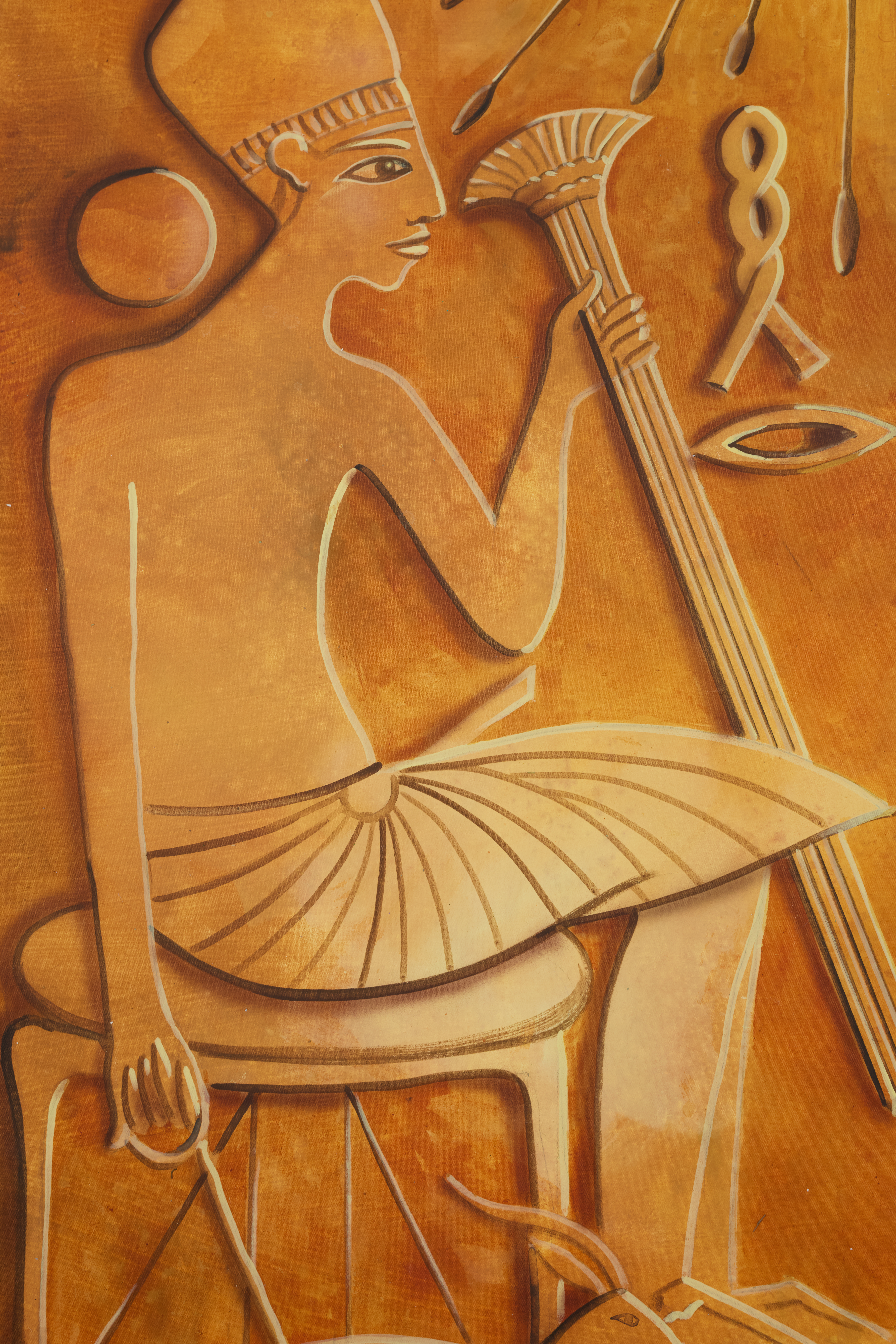 Ancient Egyptian mythology. Eye of Ra. God of the sun. Symbolic wall carving. Historic sculpture. Refer to 1201B.