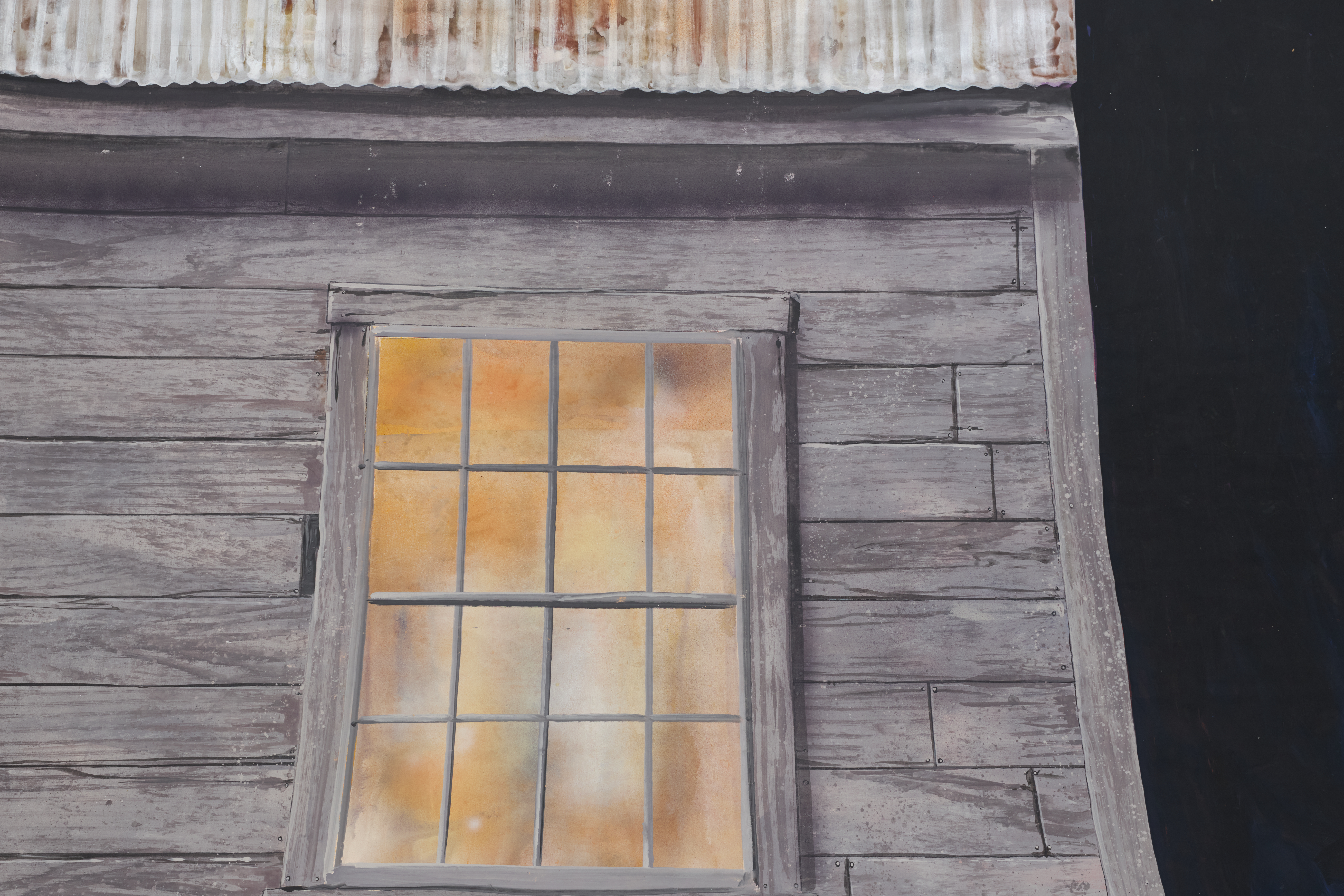 Weathered/ages wooden building façade, house, window, metal roof, barn. Pairs with #1299A.