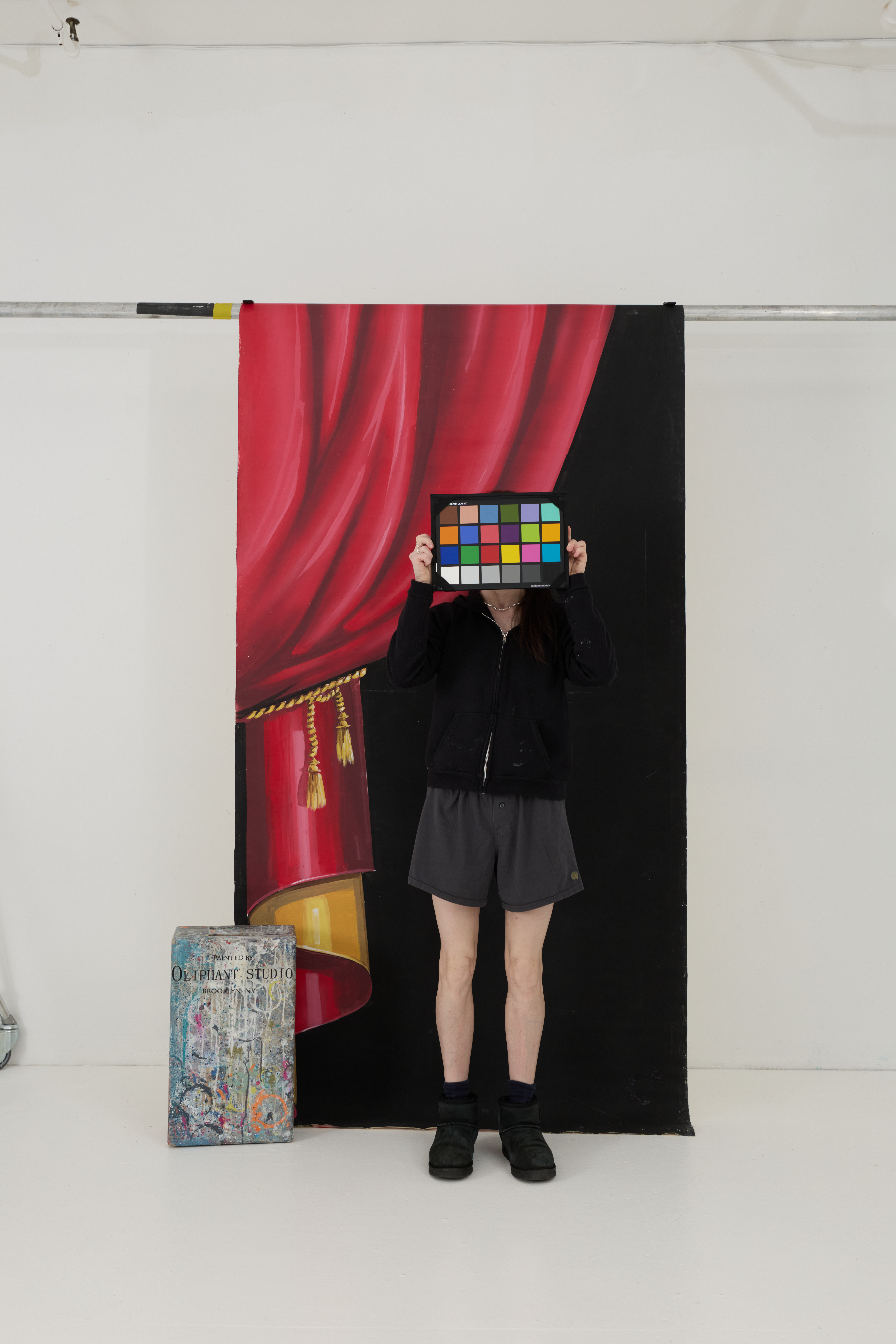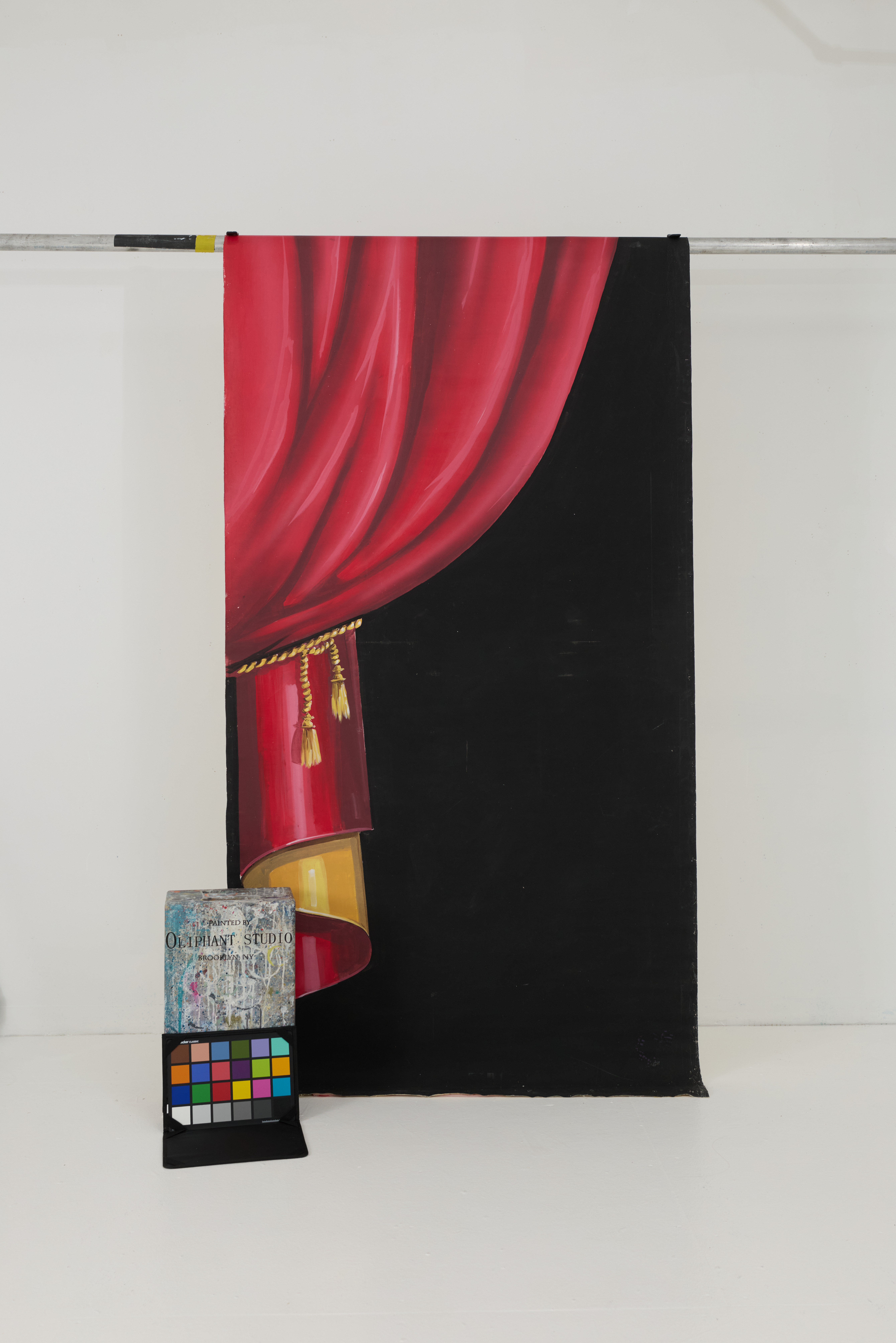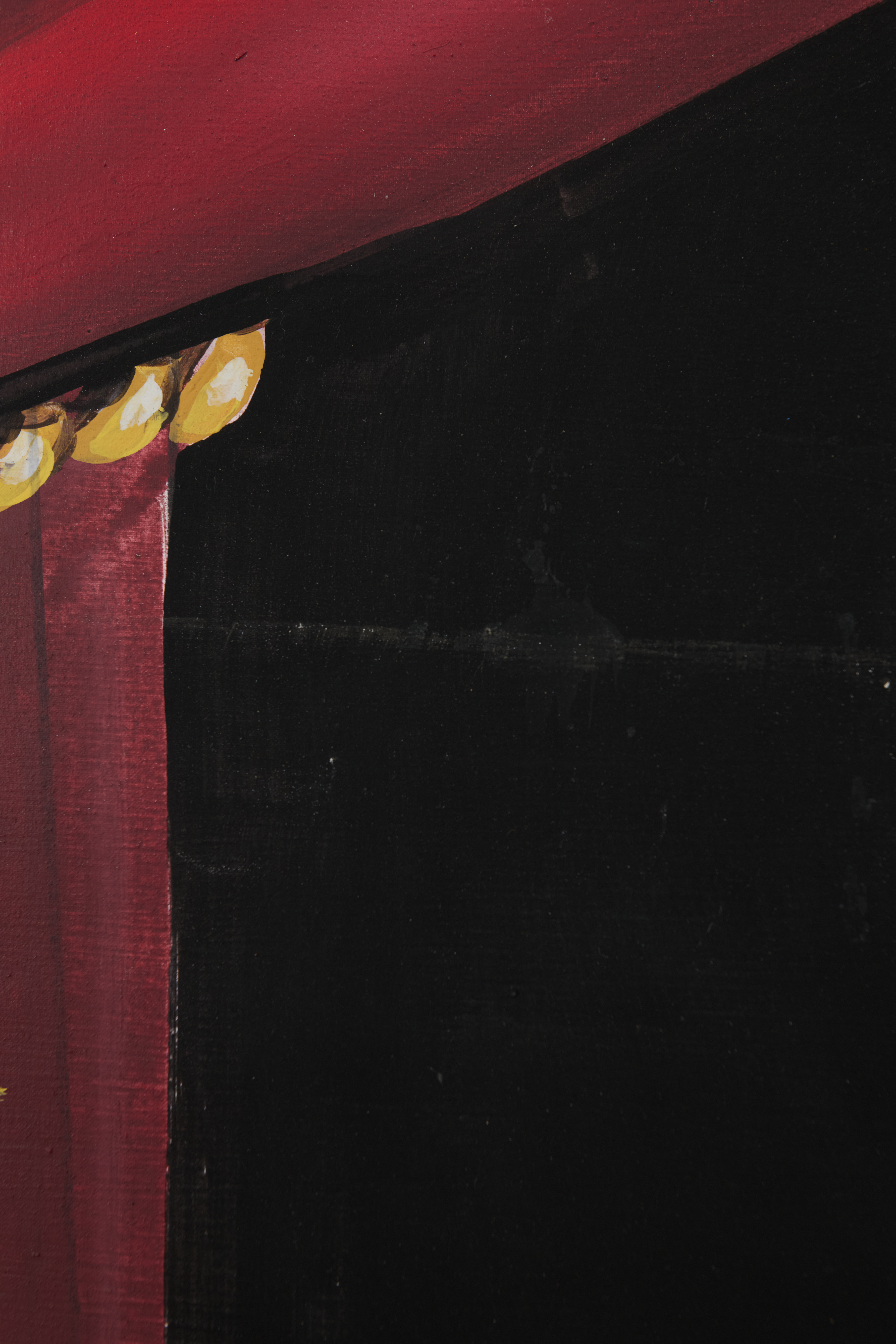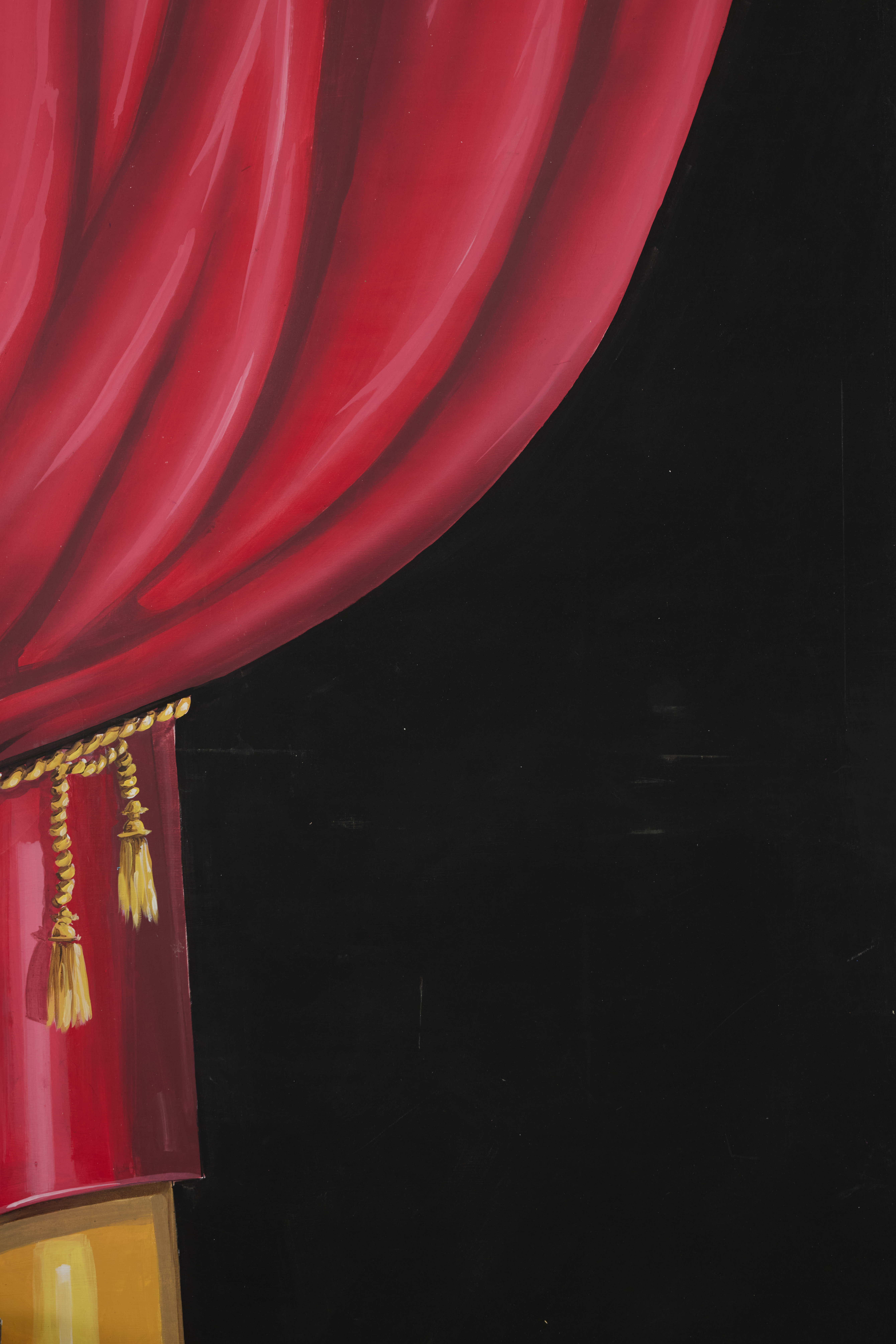 Theatrical red drape with gold tassels. Stage Left. Curtain call. Matching curtain #1327A.