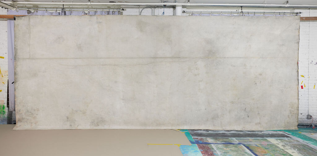 Aged, beige, off white tones. Distressed texture. Seam on top. Factory wall.