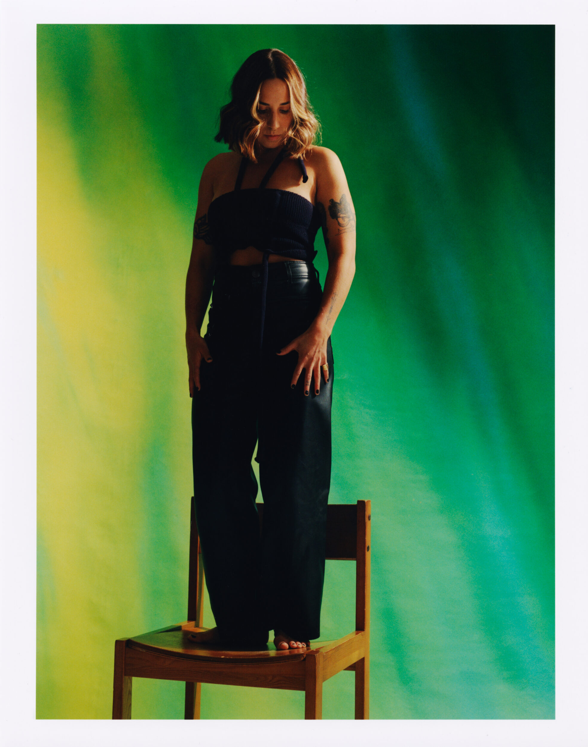 Fade blend gradient green to yellow with a hint of blue. Abstract sky. Drop can be hung both ways.