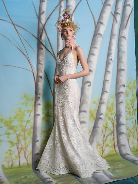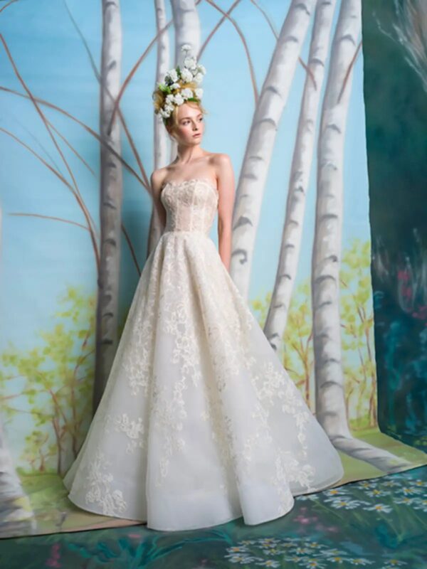 Birch trees with green foliage, and a soft blue sky. Forest landscape.
