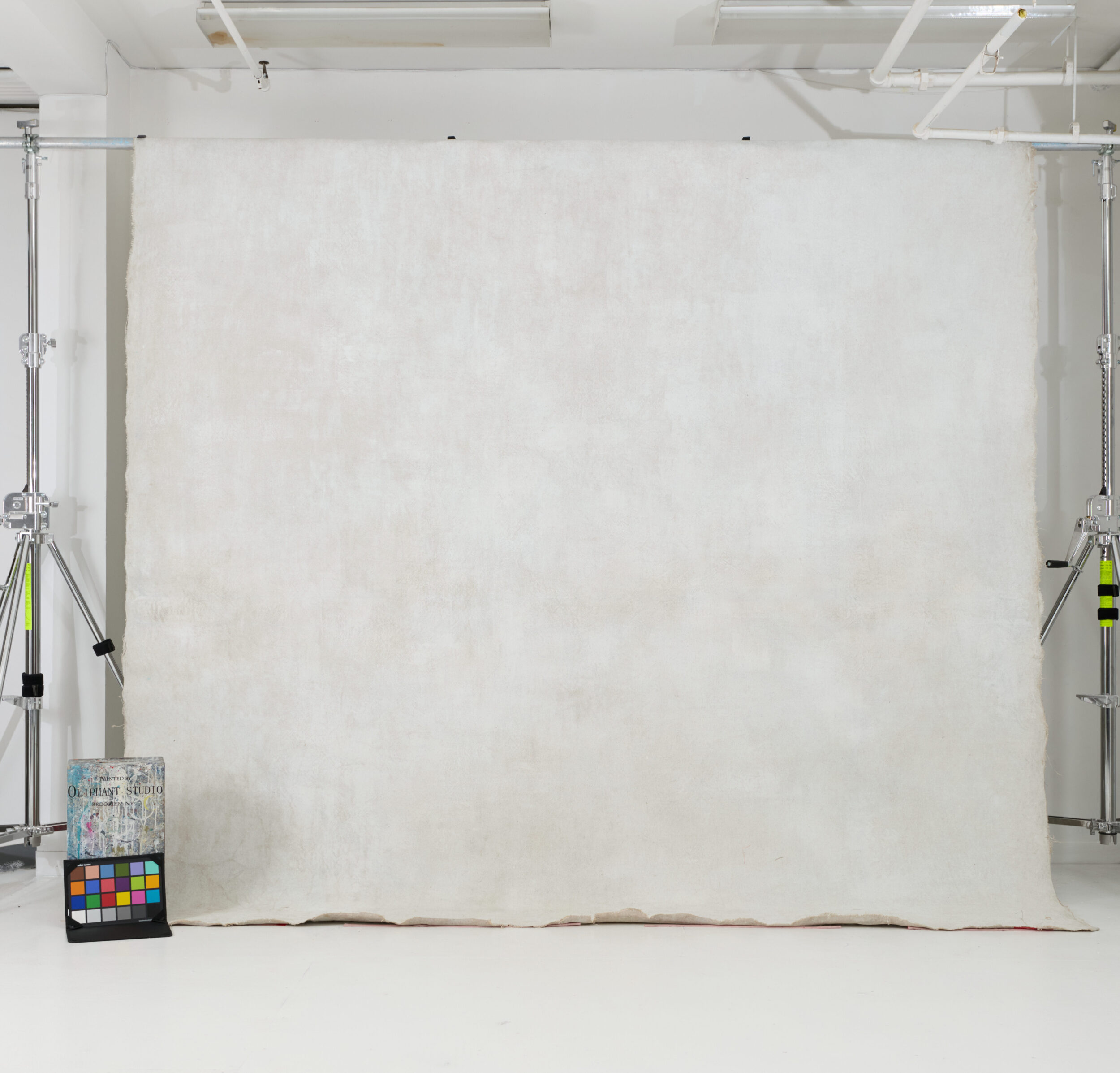 Chalky off-white with warm beige undertones. Painted on BURLAP.