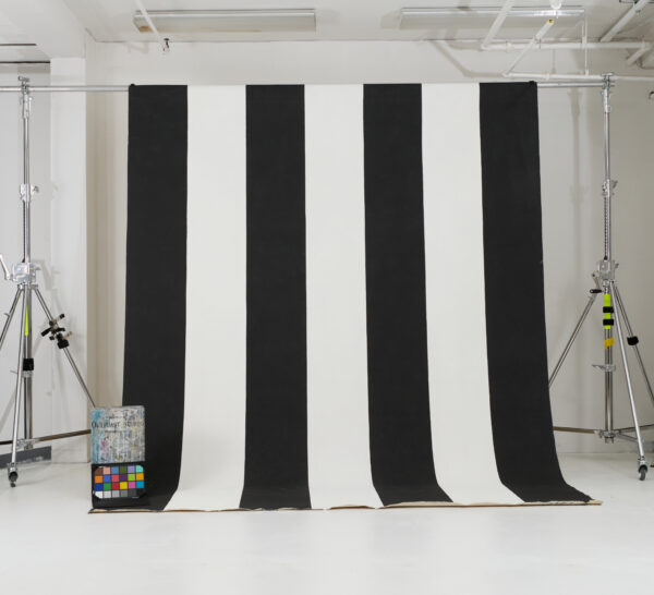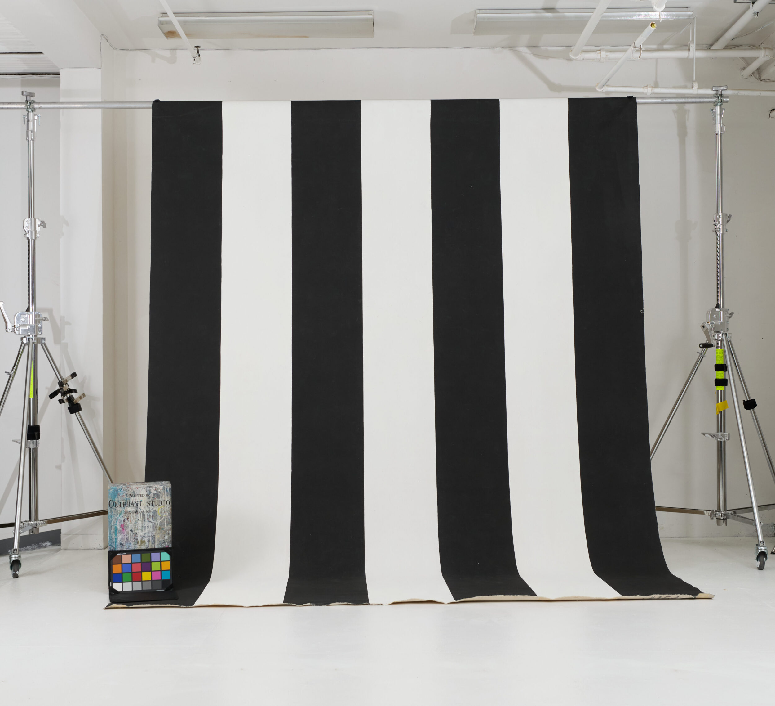 Black and white stripes, pattern. Stripes are 16″ wide.