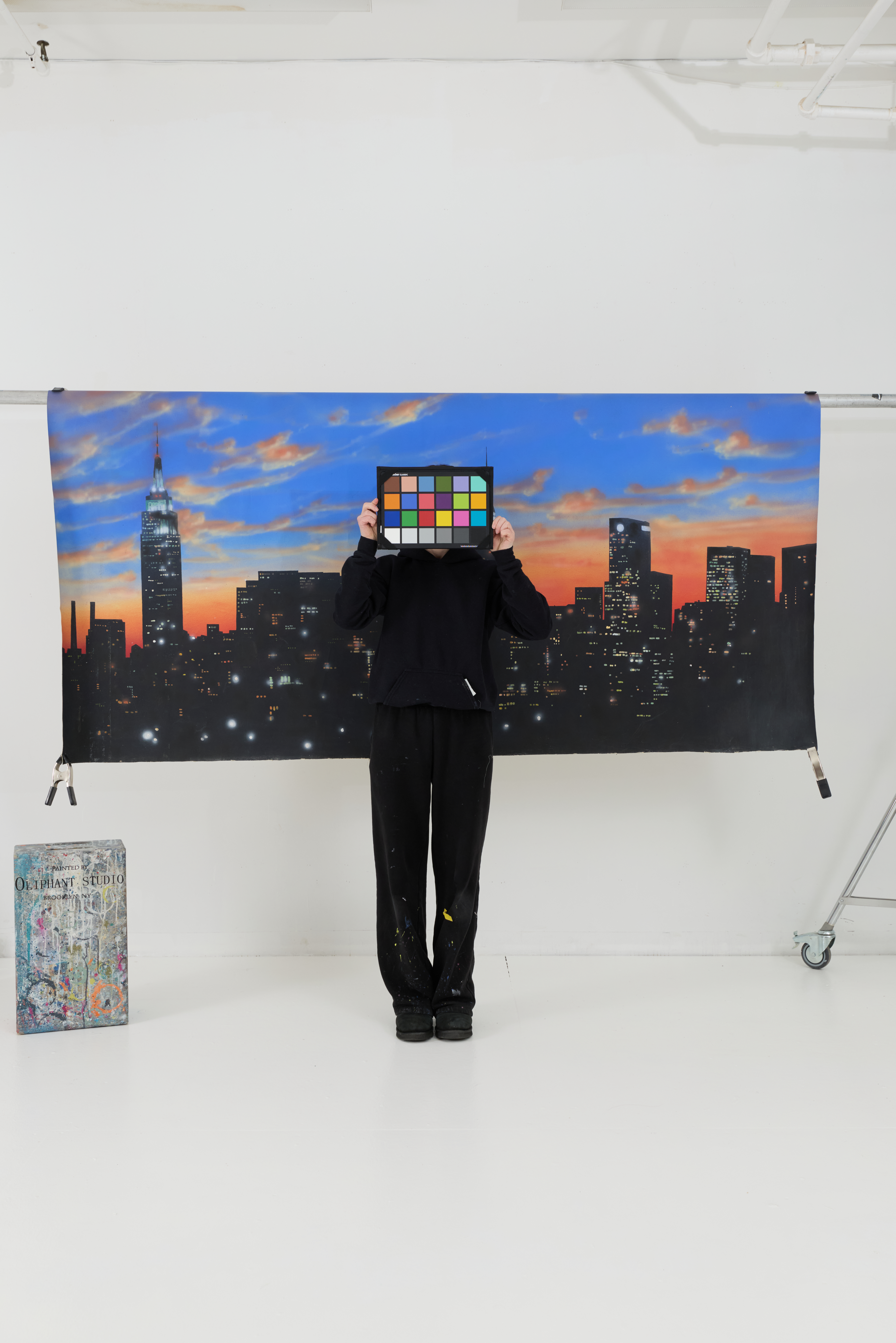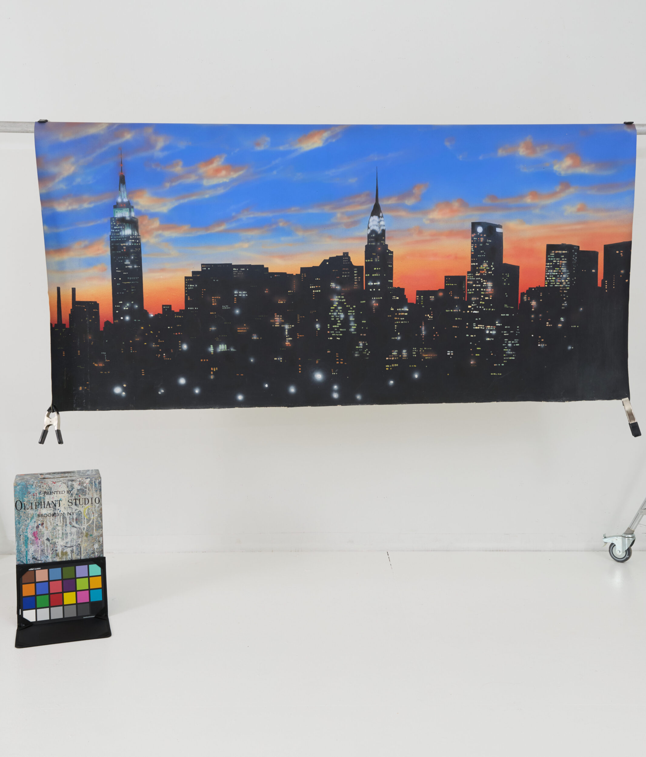 Keywords: sunset cityscape new york city empire state building horizon clouds blue pink sky