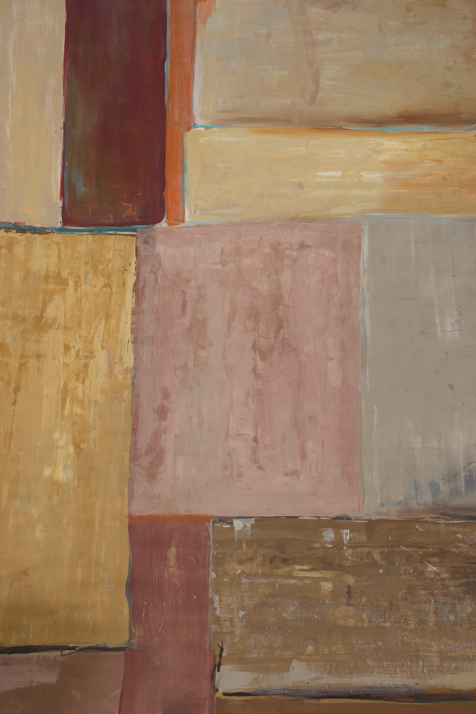 Abstract blocks in ochre, rust, and taupe-textured, painterly.