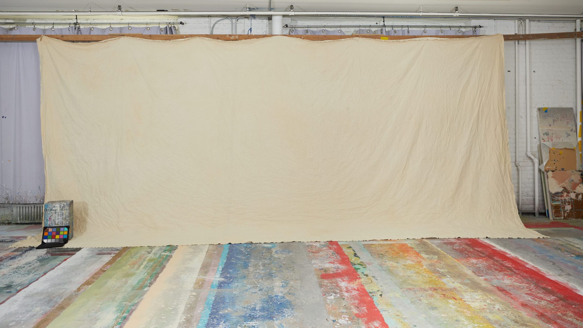 Washed raw canvas with slightly aged texture. Pantone Colors: 4246U, 454U