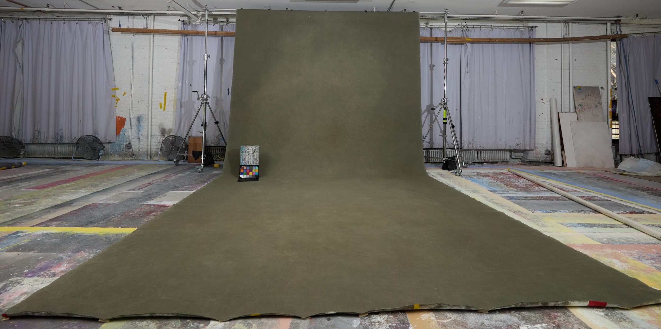 Olive green with hints of brown. Mottled texture. Pantone Colors: 7764U, 7771U