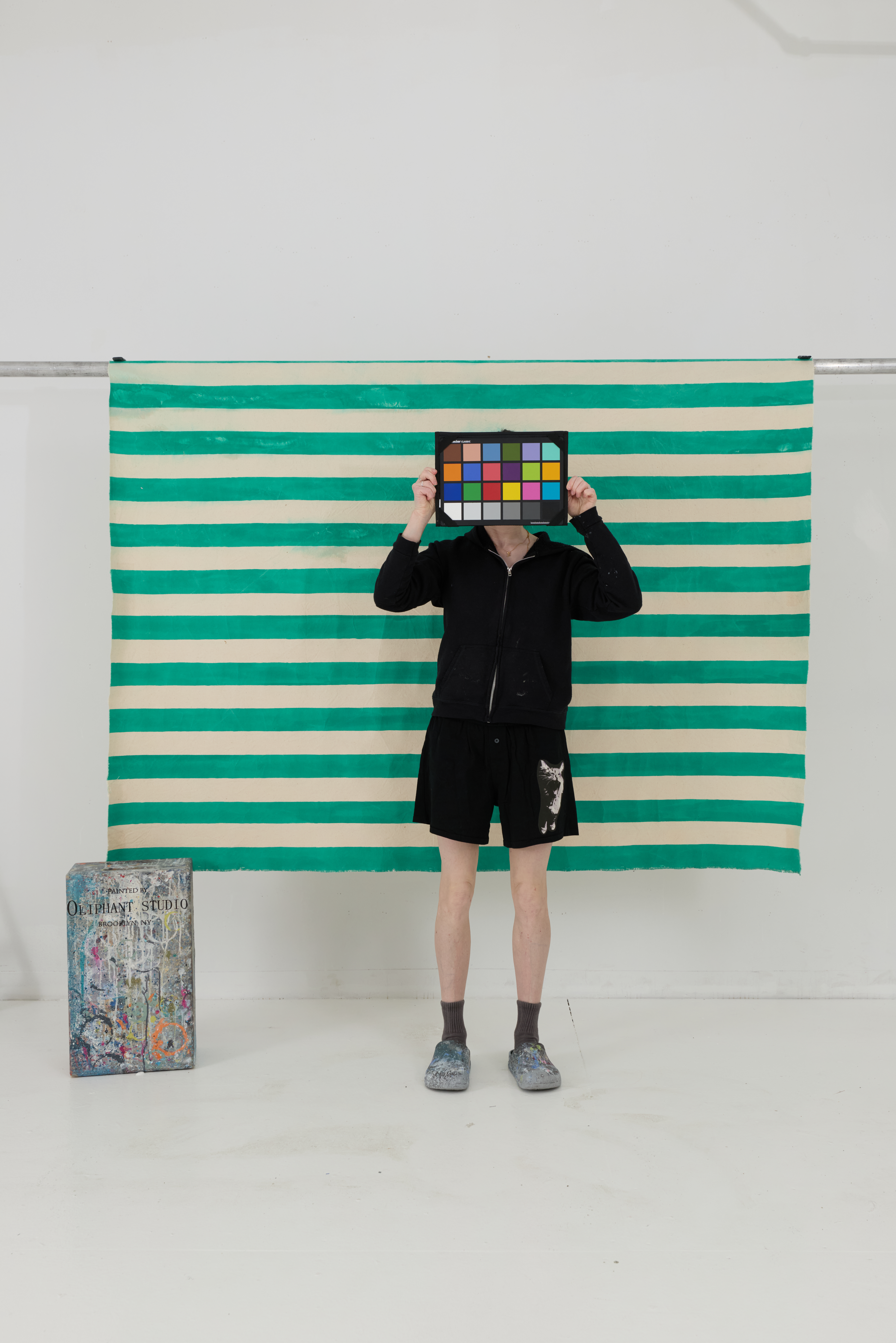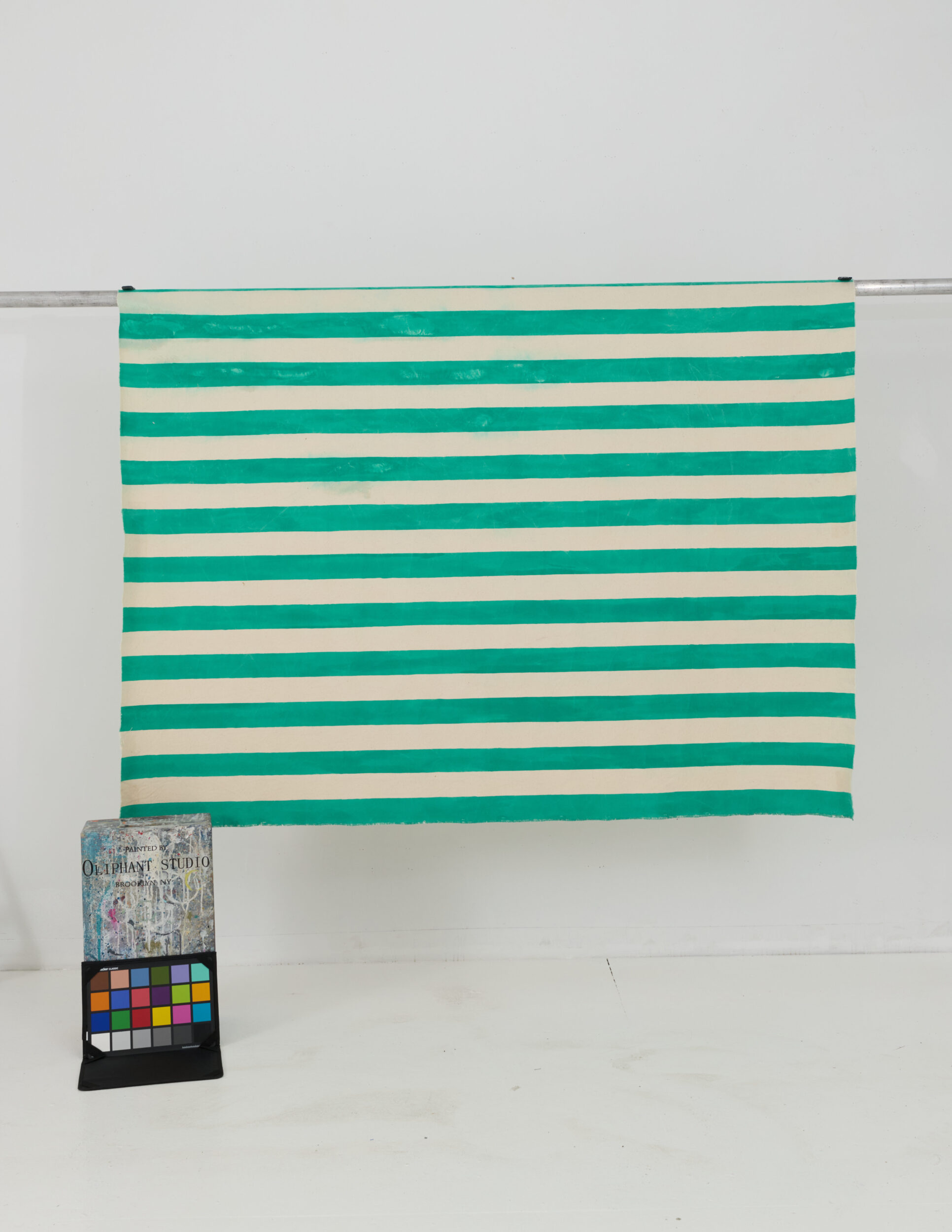 Washed green and white stripes. Drapable. Versatile orientation—can be shot both vertically and horizontally.