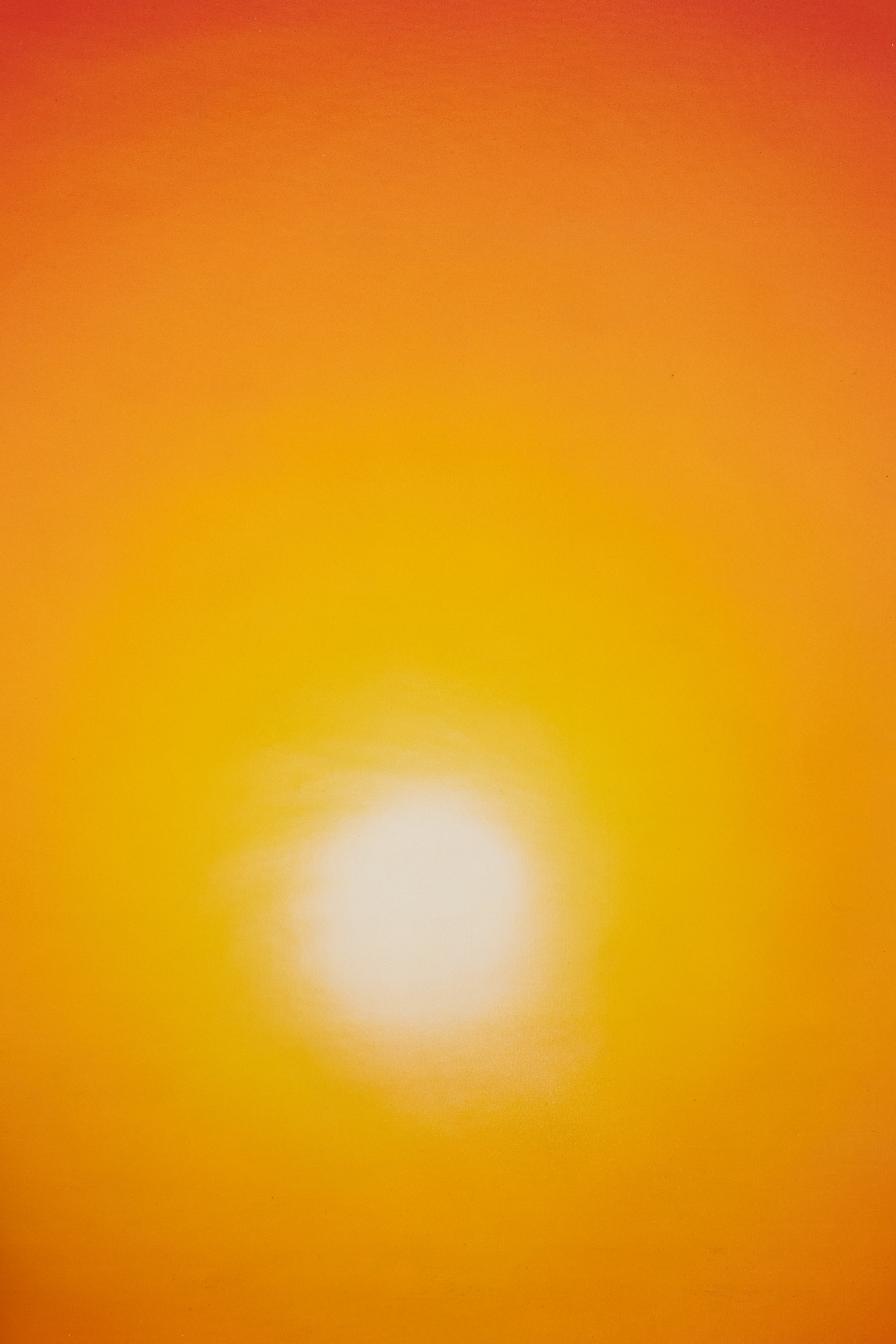Sunrise/Sunset. Glowing white center fading through golden yellow into deep orange and crimson red.