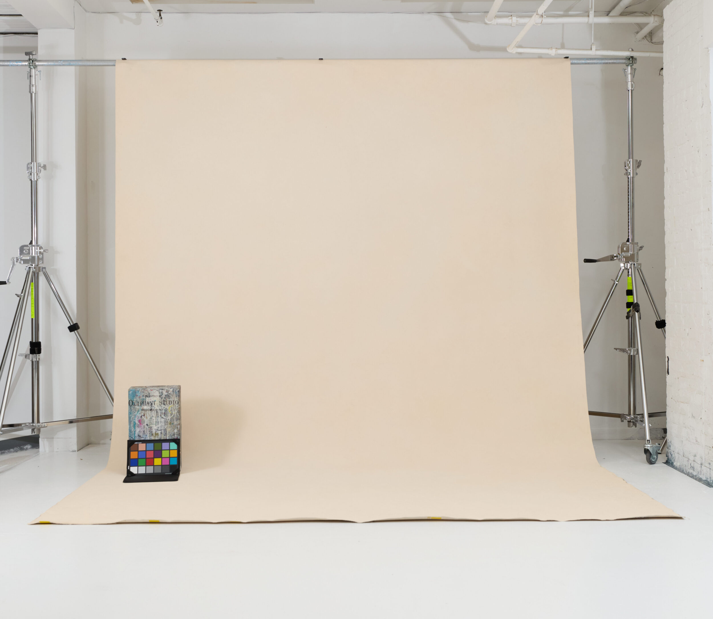 Creamy beige with soft yellow and peach undertones. Subtle texture. Pantone: 7506U, 7507U.