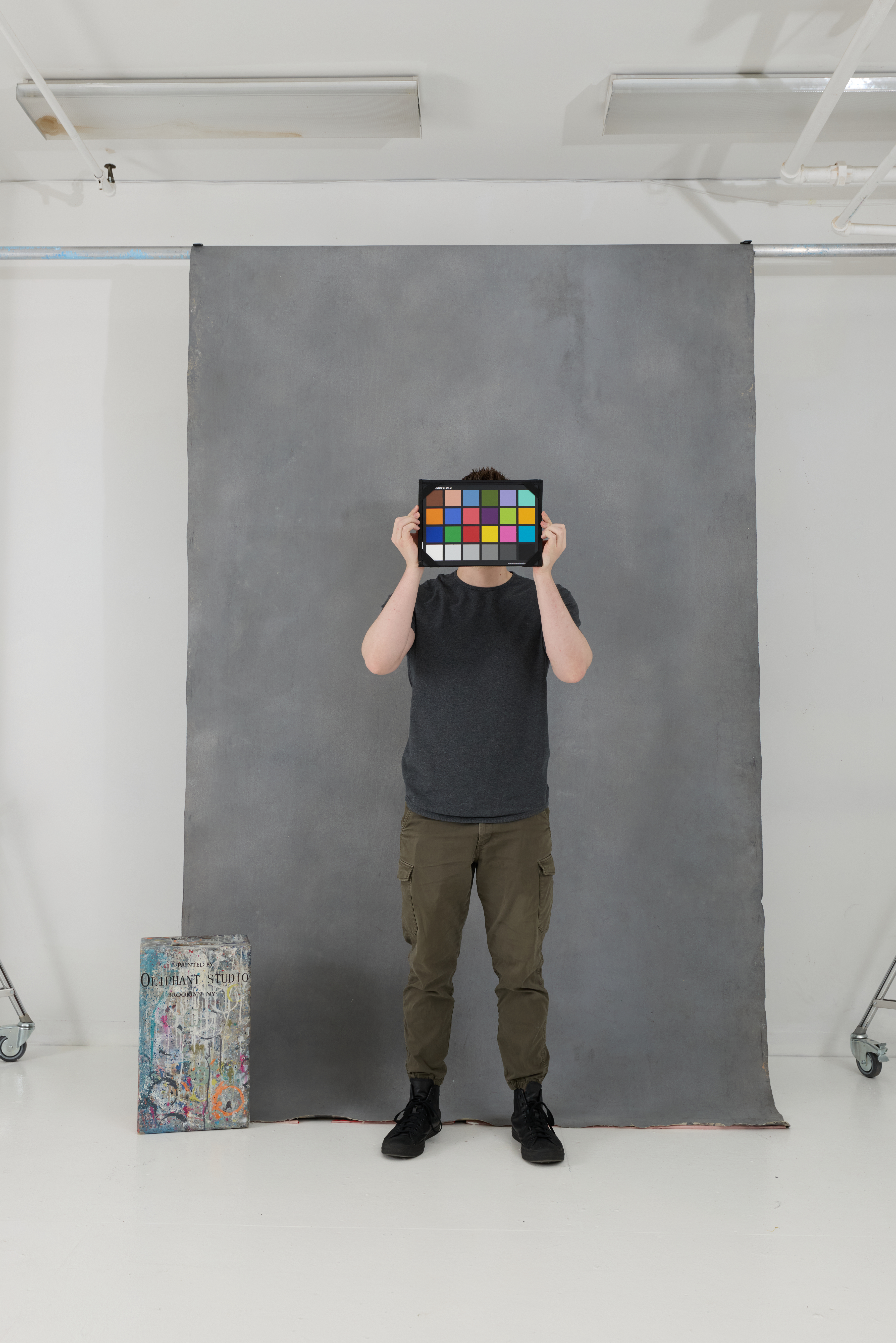 Warm grey. Slightly streaky worn texture. Pantone: 5295M, 430M