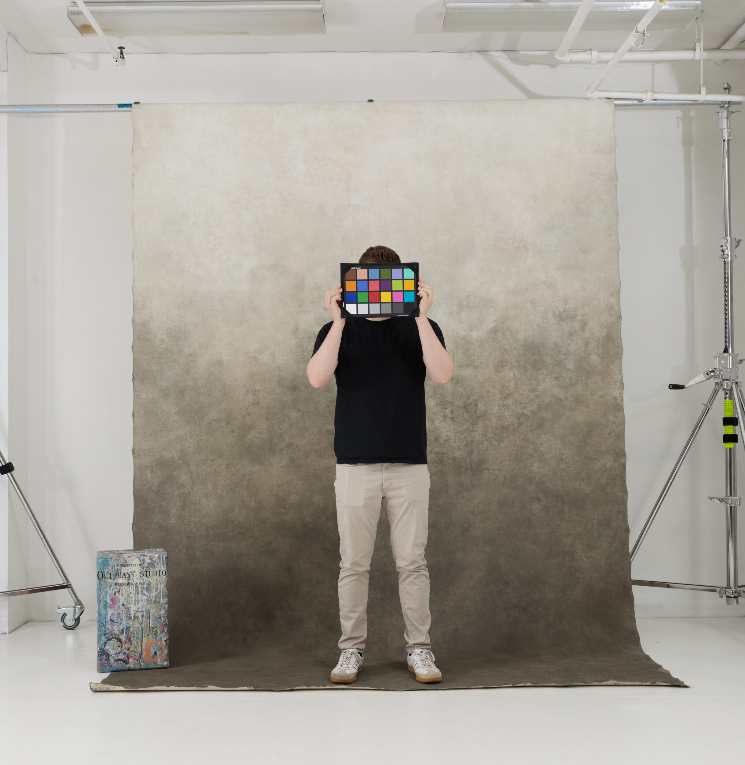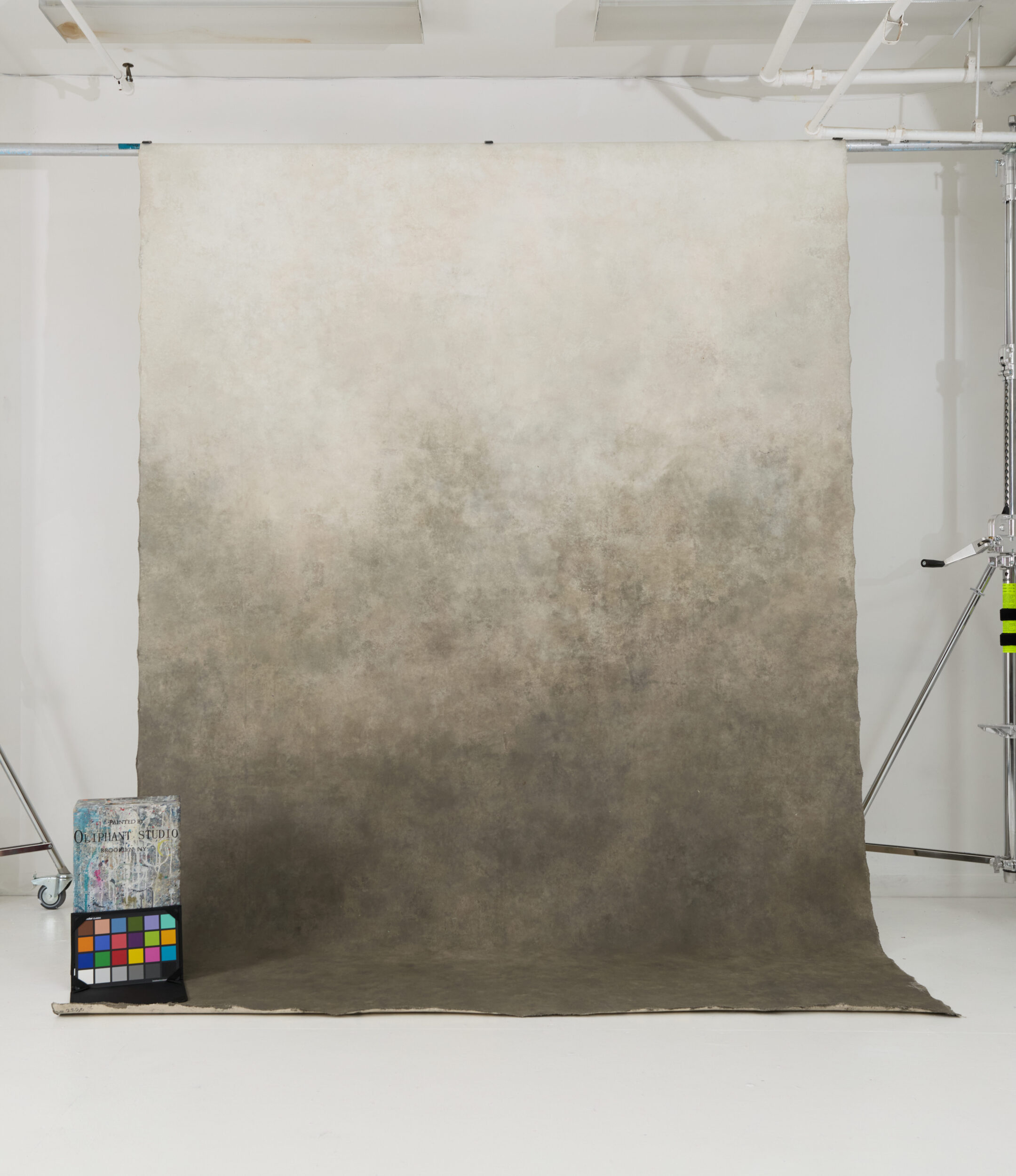 Olive-brown tones with warm taupe and beige undertones. Aged wall texture. This drop can be hung in either direction—horizontal or vertical—depending on the look you prefer. Pantone Colors: 448U, 2327U, 7534U