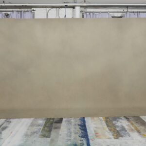 Very aged dark brown with hints of grey and rust. Seam on left side of drop.