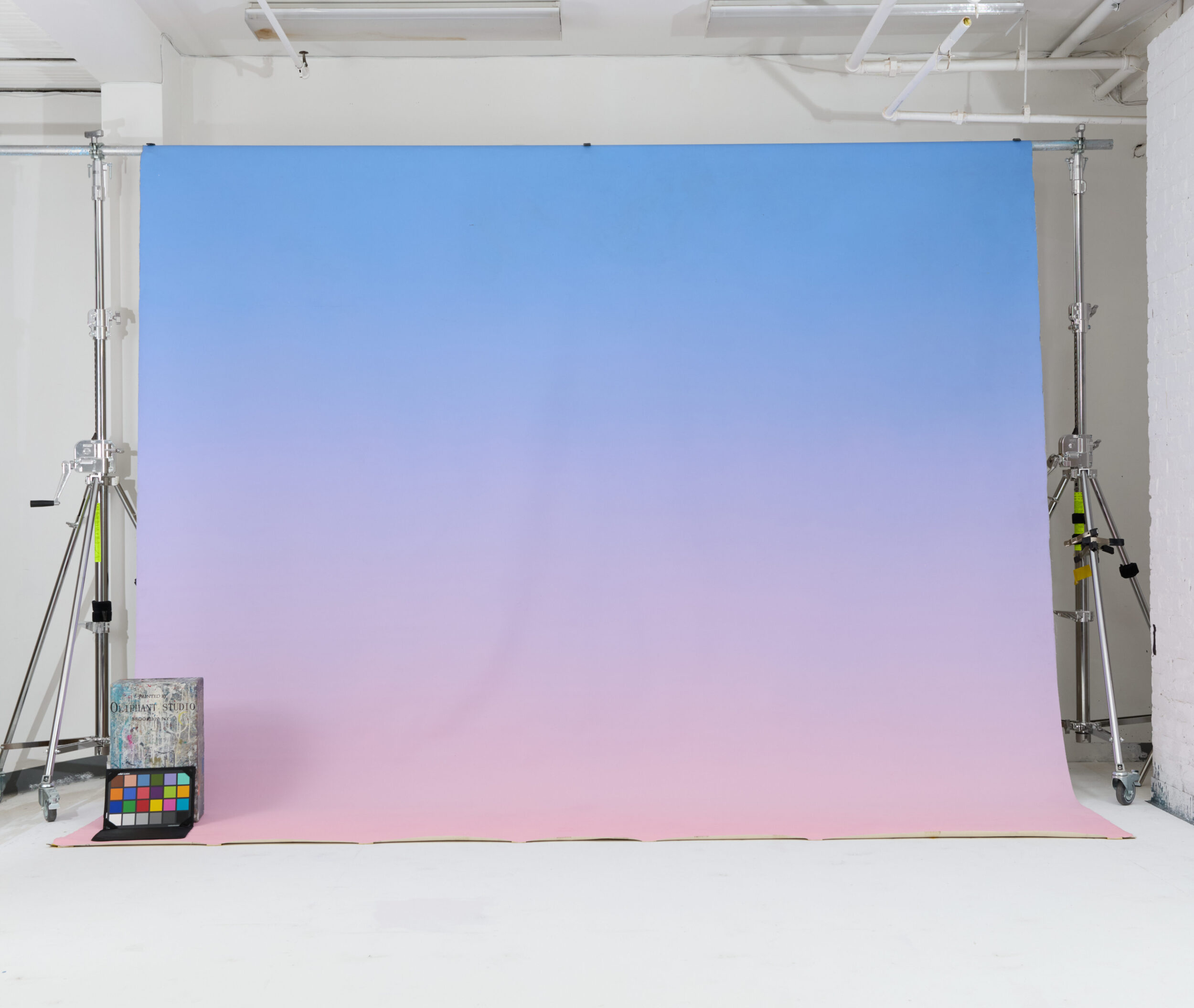 Periwinkle blue to pink smooth gradation. Pantone Colors: 2129U, 270U, 6064U