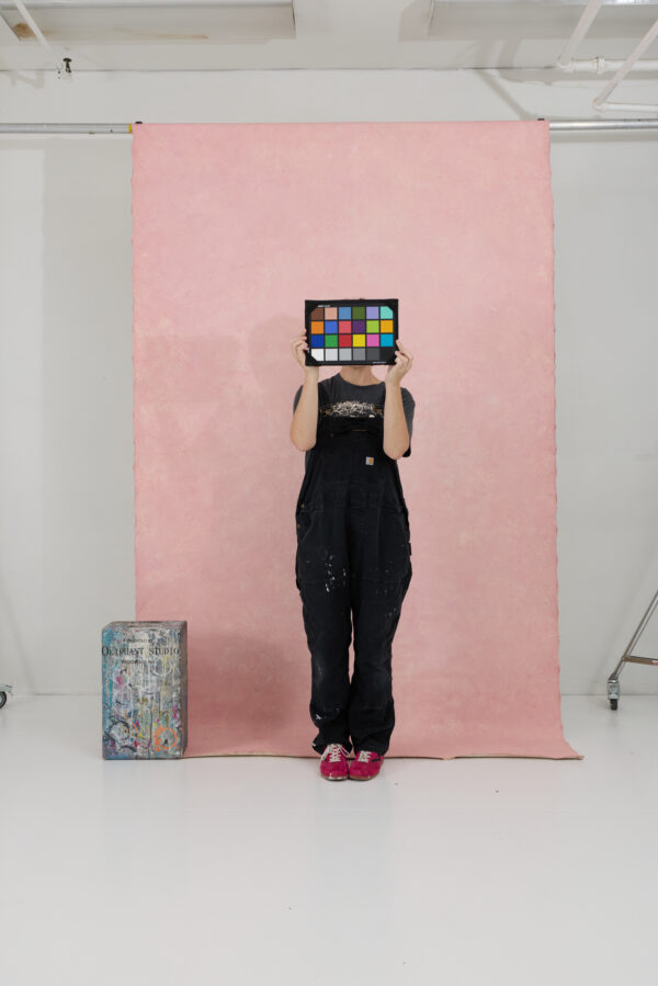 Pink. Heavy texture with jaxsan. Pantone:7422U, 699U.