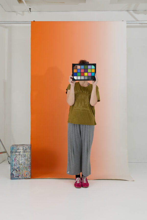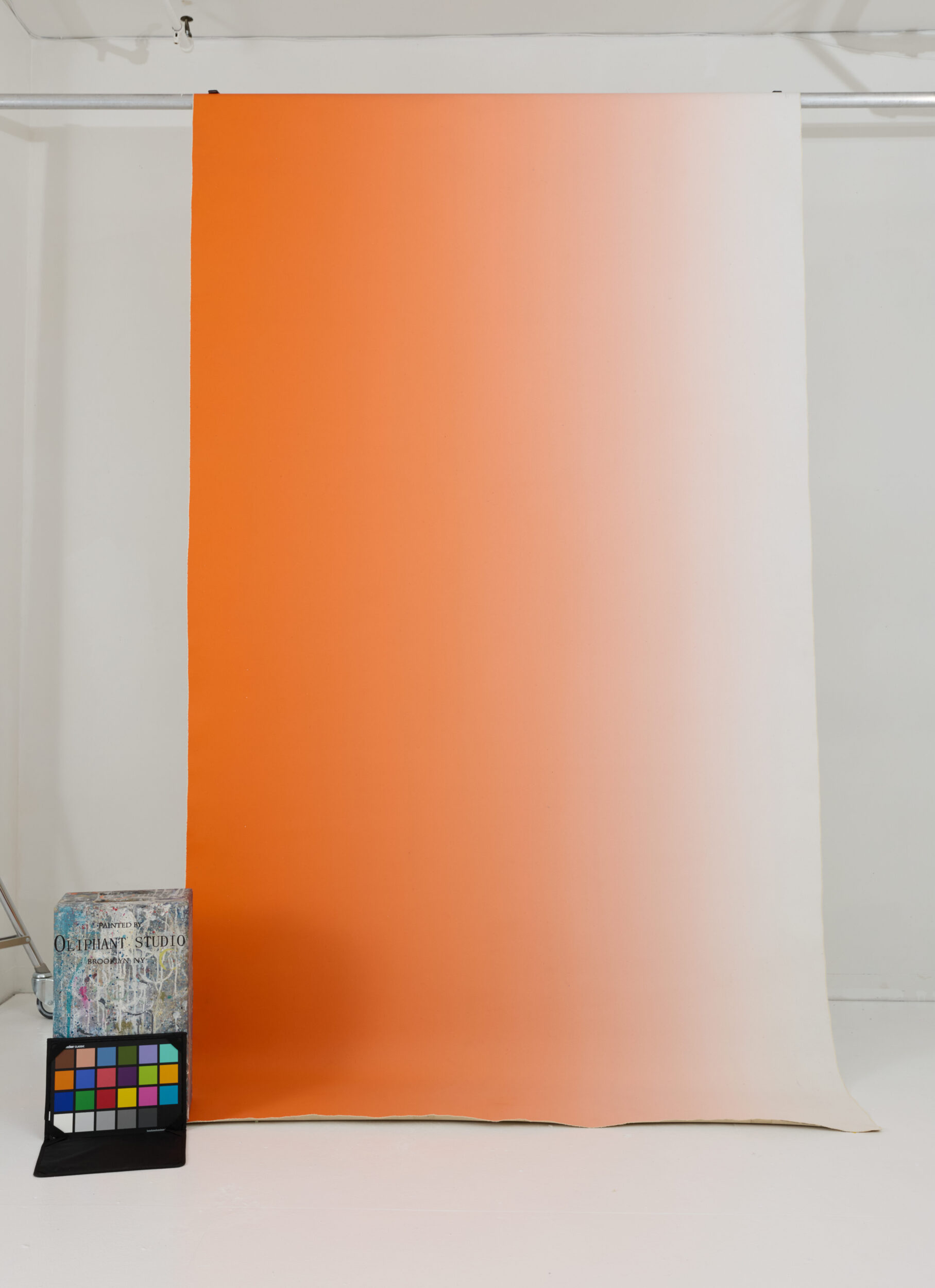 Orange to white fade blend gradation. Pantone Colors: 3564U, 7411U. Versatile gradient design — can be hung vertically or horizontally to suit your vision. Shown here in a horizontal orientation.
