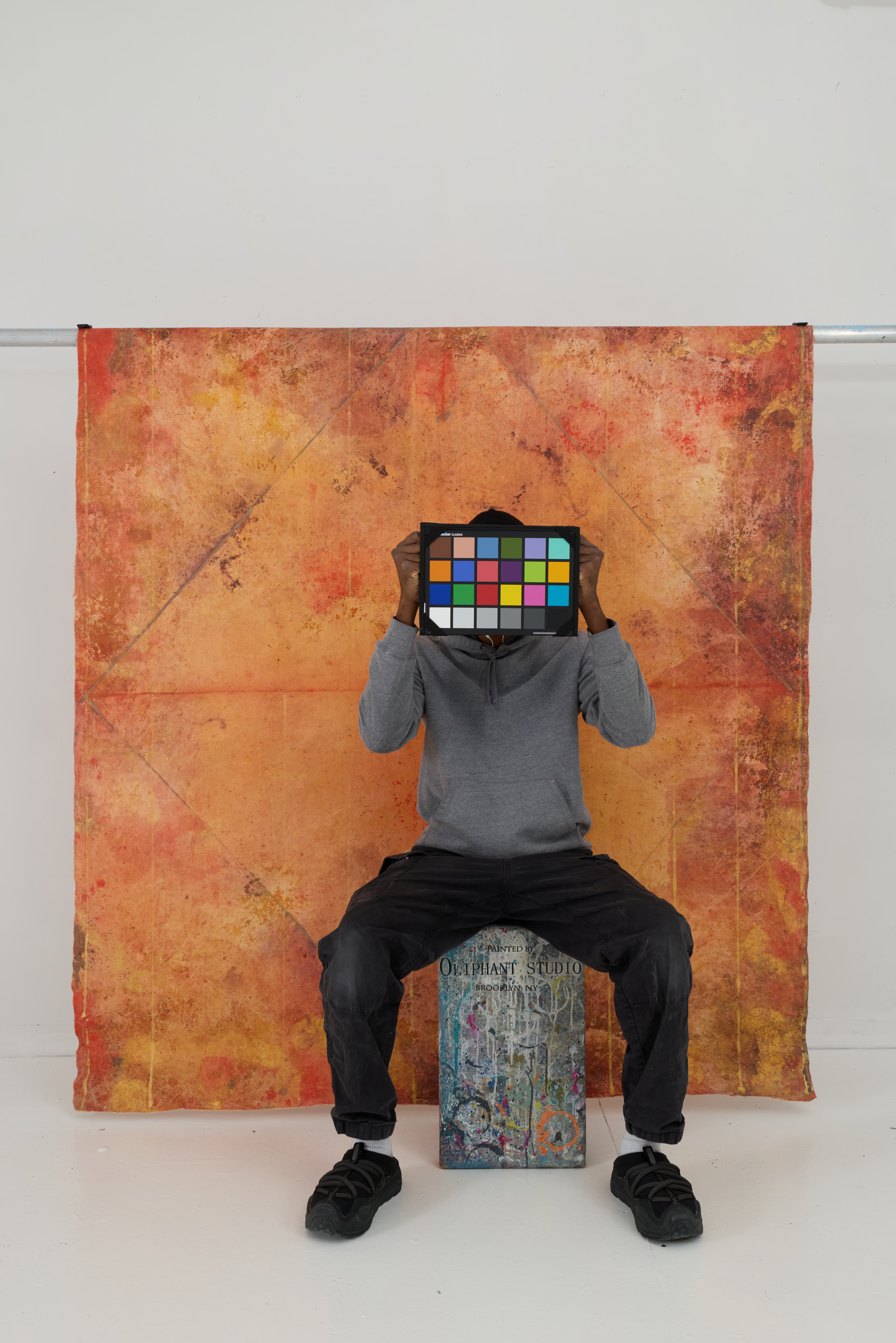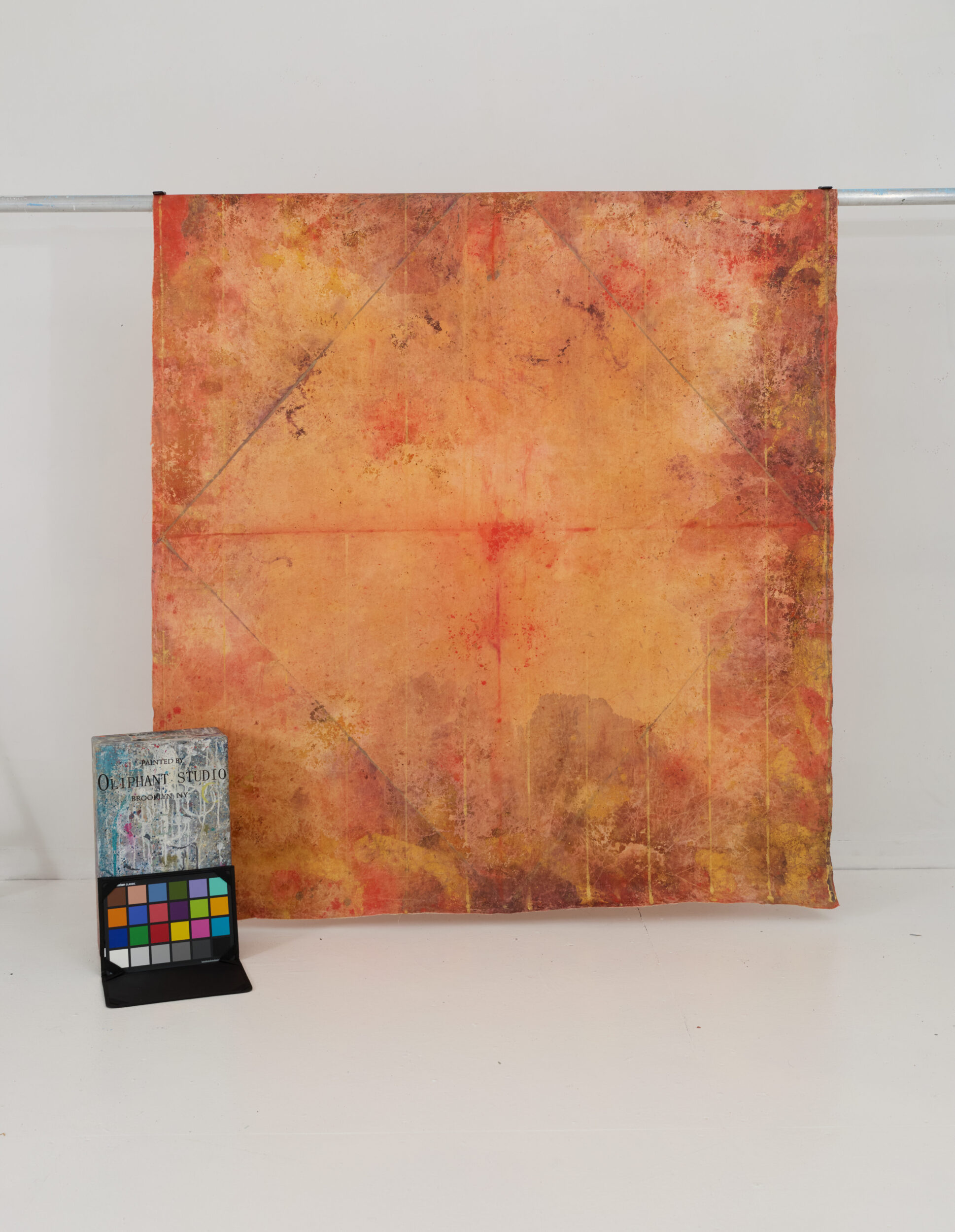Abstract design in amber, rust, and ochre tones. Subtle geometric lines