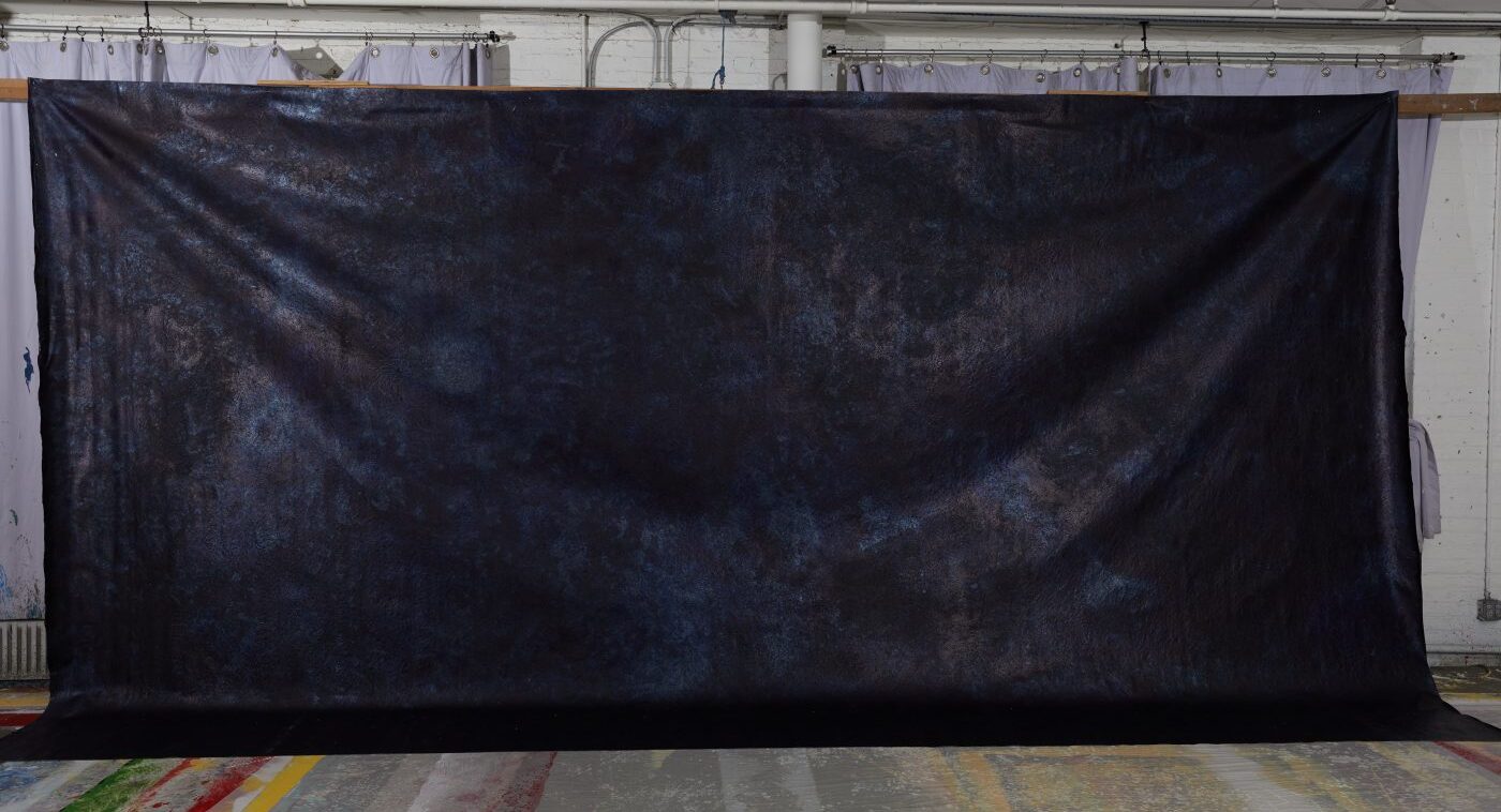 Black and blue with purple and indigo undertones. Slight metallic/sheen with physical texture. Pantone Colors: 539U, 289U, 296U