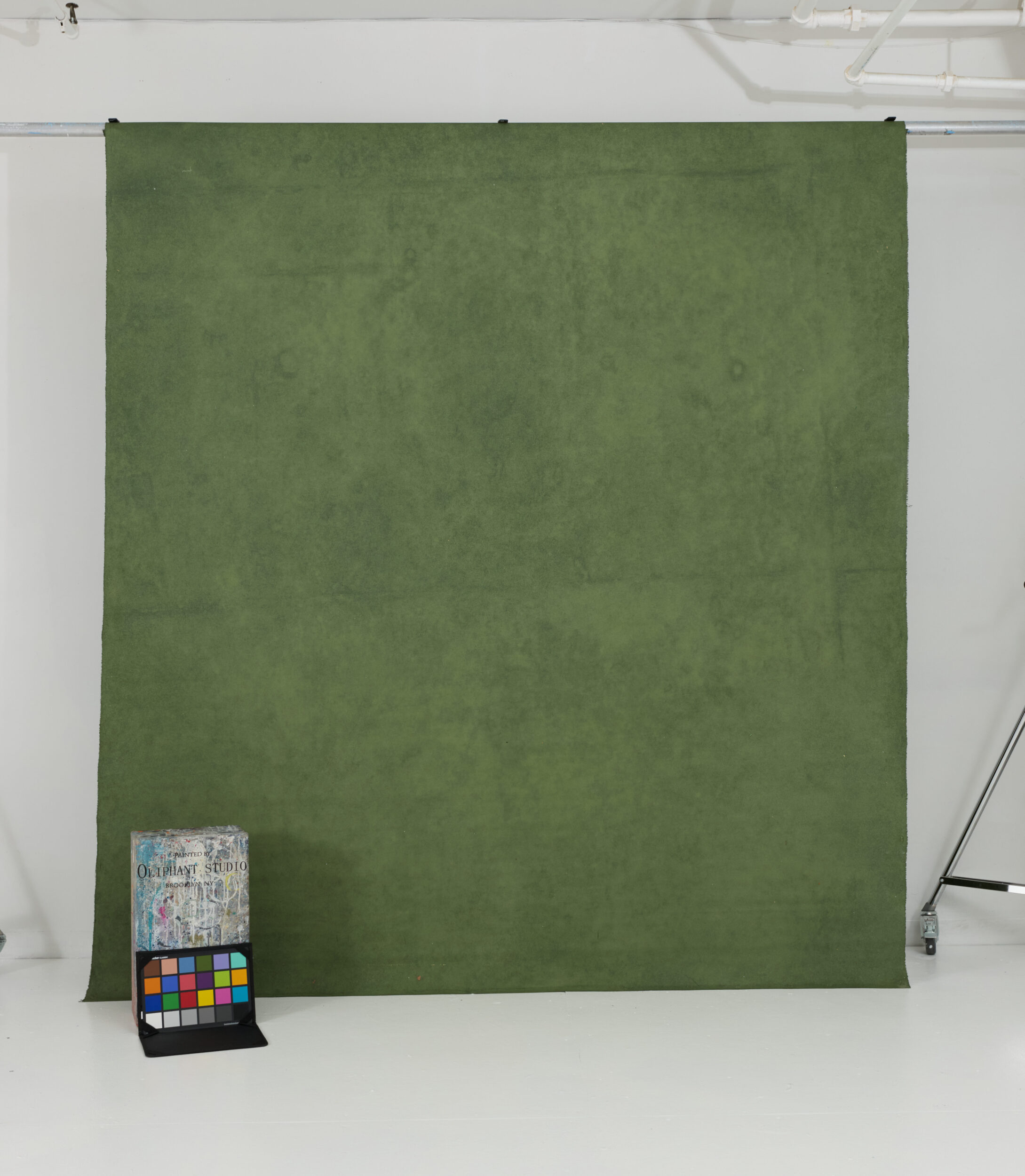Olive green with medium distressed texture. Ungessoed. Pantone Colors: 5743U, 6188C