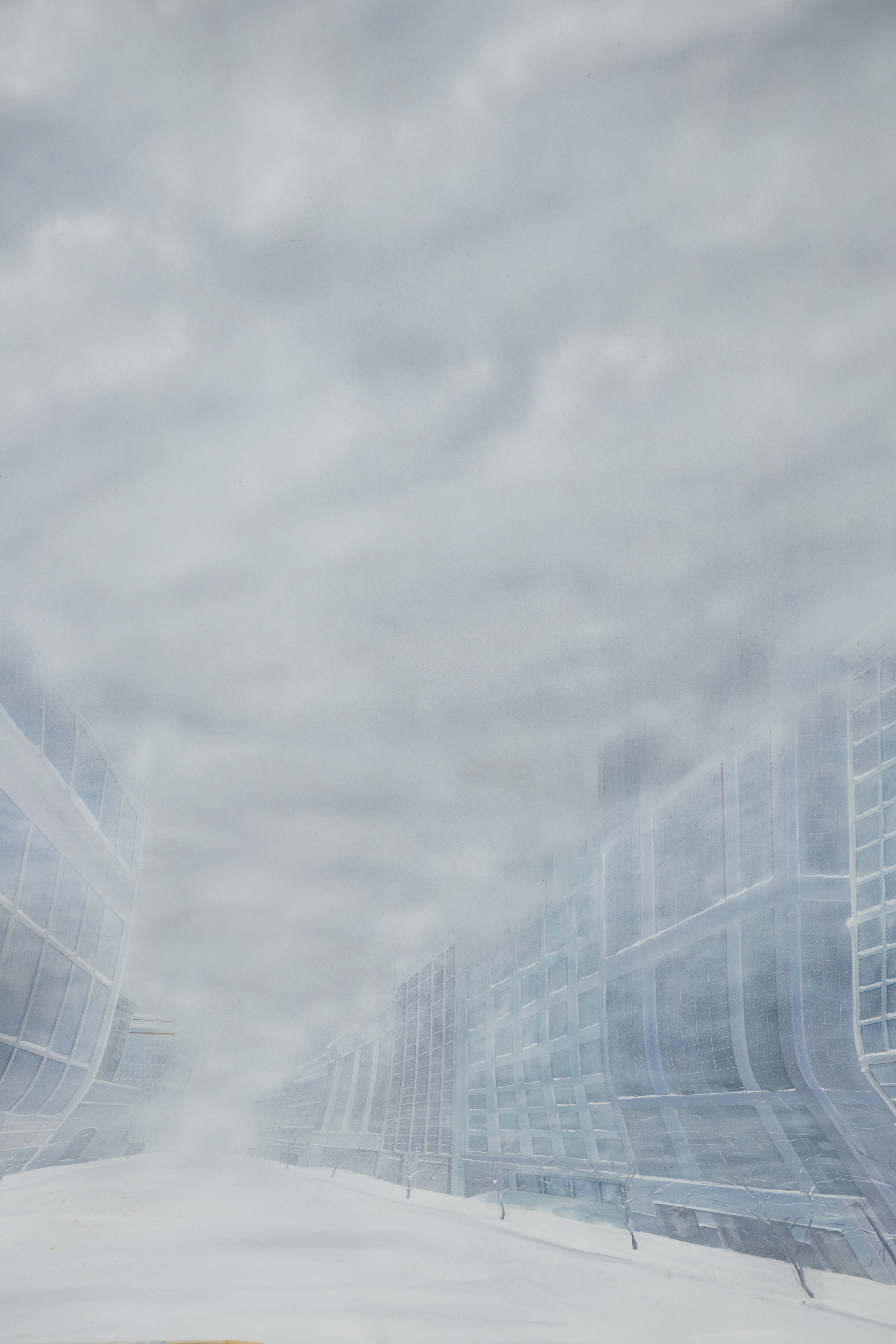 Snowy downtown, urban winter scene, foggy cityscape. This drop is VINTAGE.