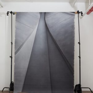 Yellow and off white loosely painted 1′ wide stripes. Pantone Colors: 4017U