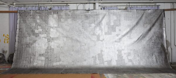 Aged silver leaf on black.