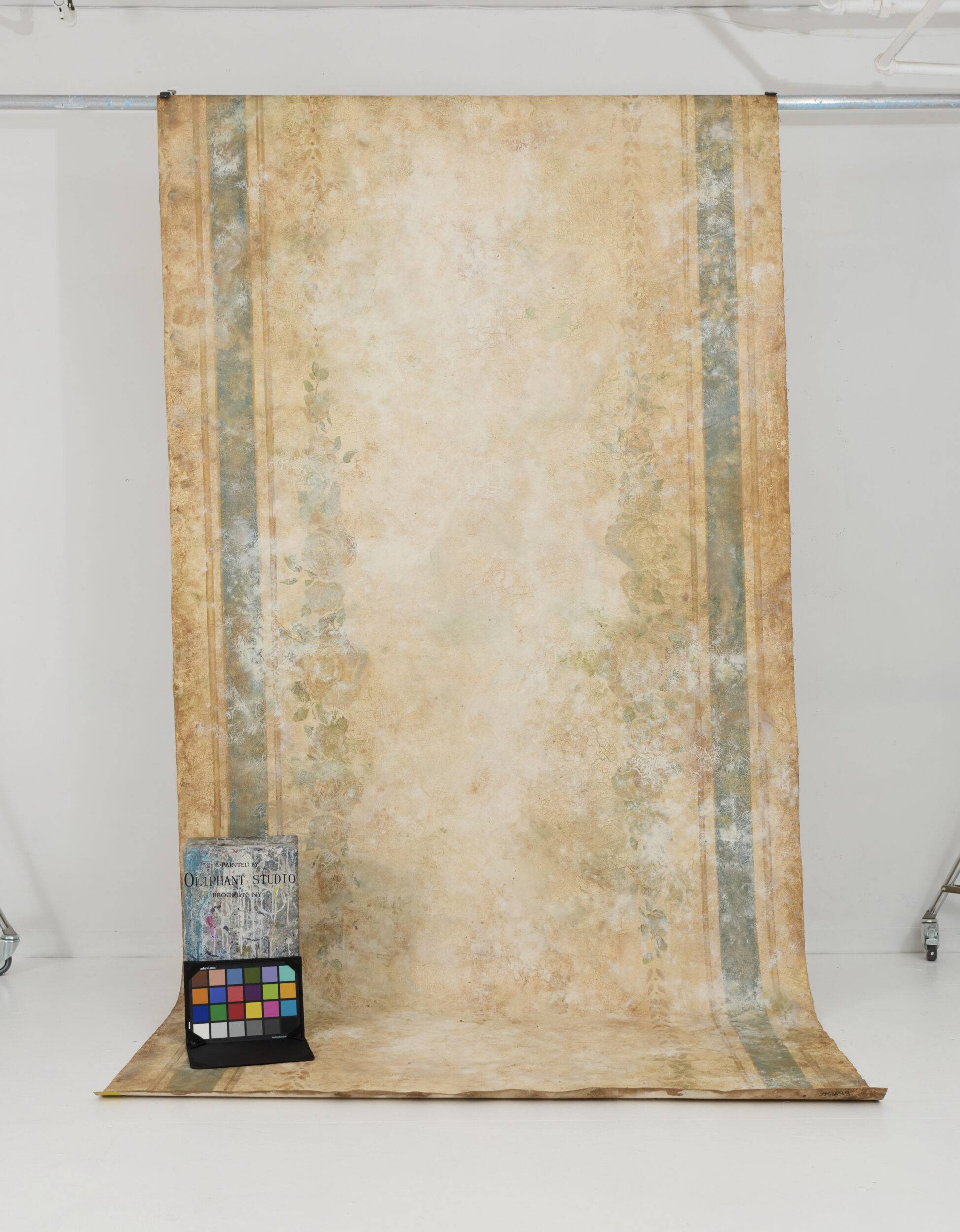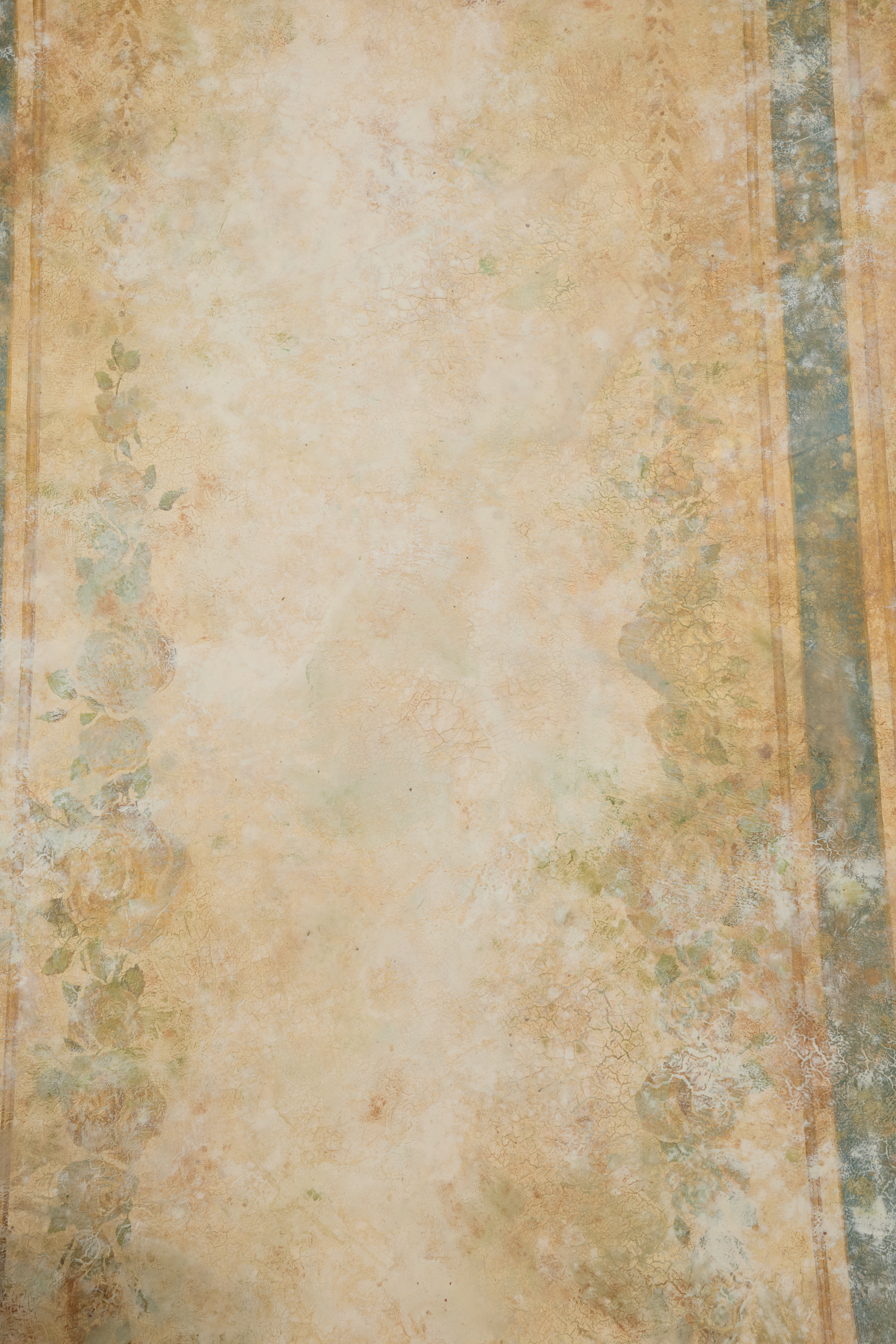 Aged patina Florentine design, teal and gold hues. Floral pattern. Heavy cracked texture.