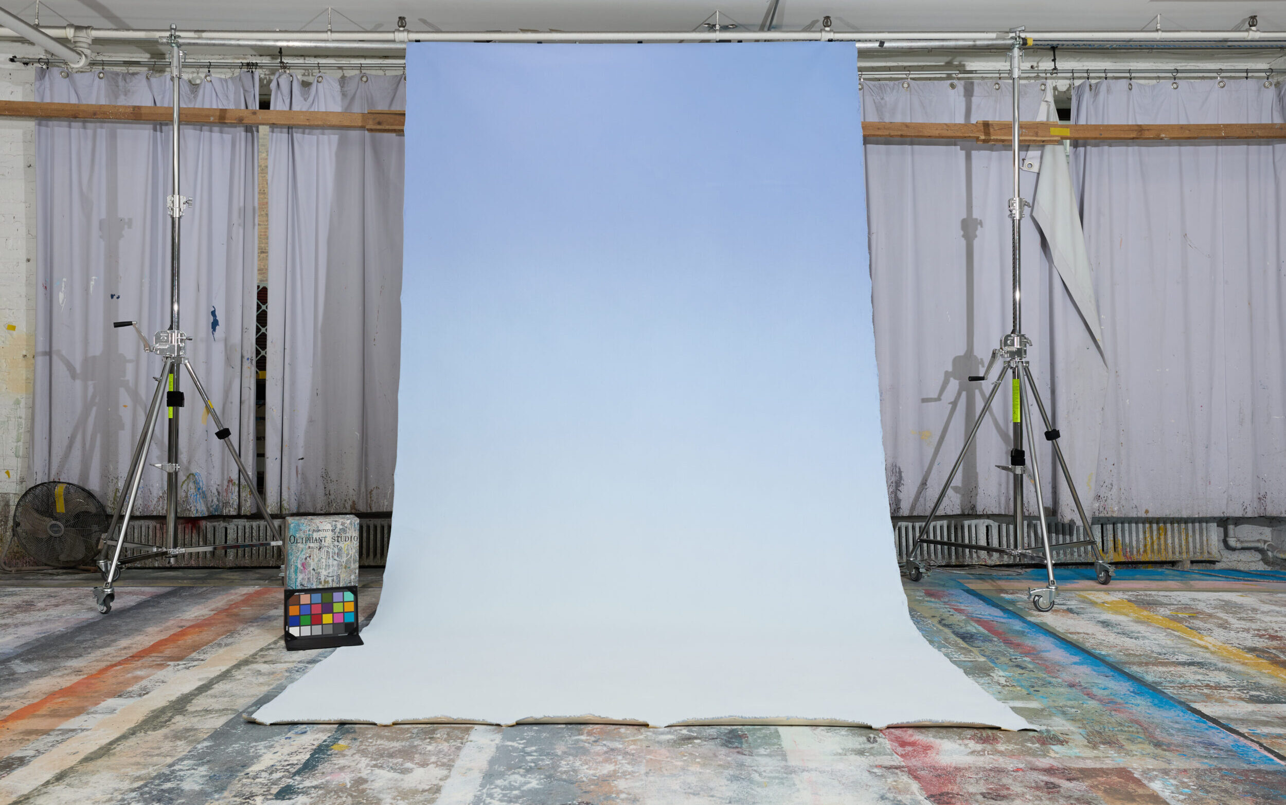 Light blue to off white gradation. Pantone Colors: 2134U, 2127U, 538U.