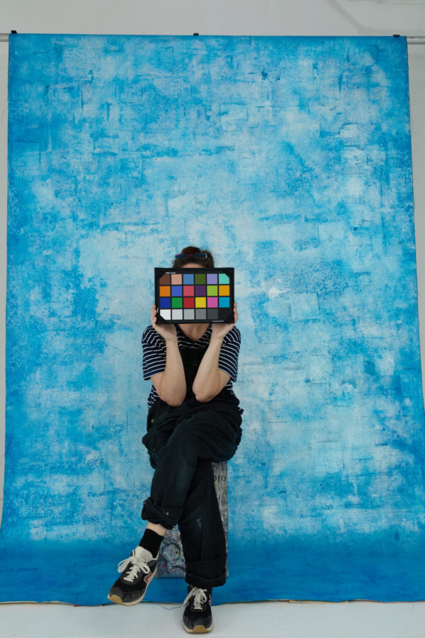 Metallic silver leaf with icy blue painted texture. Pantone Colors: 632U, 2200U