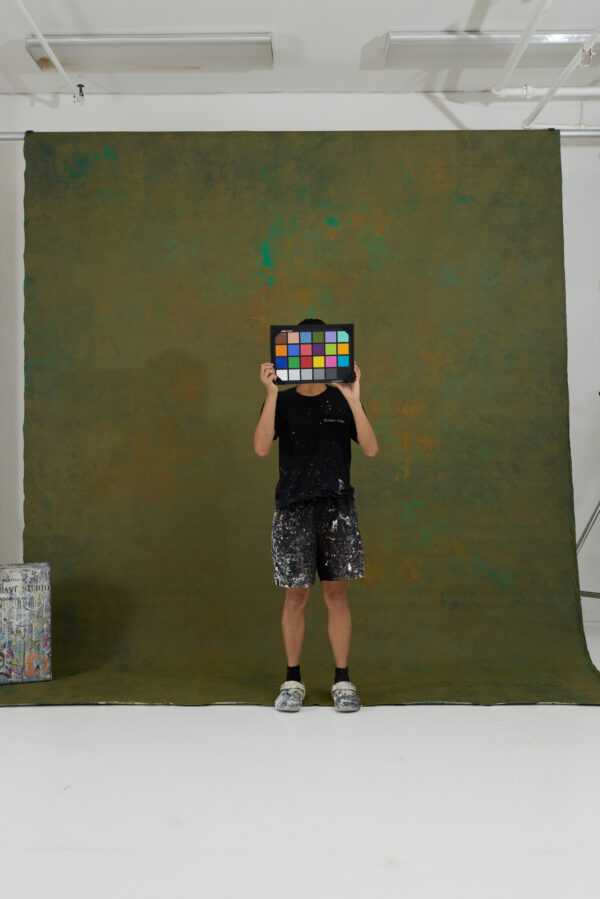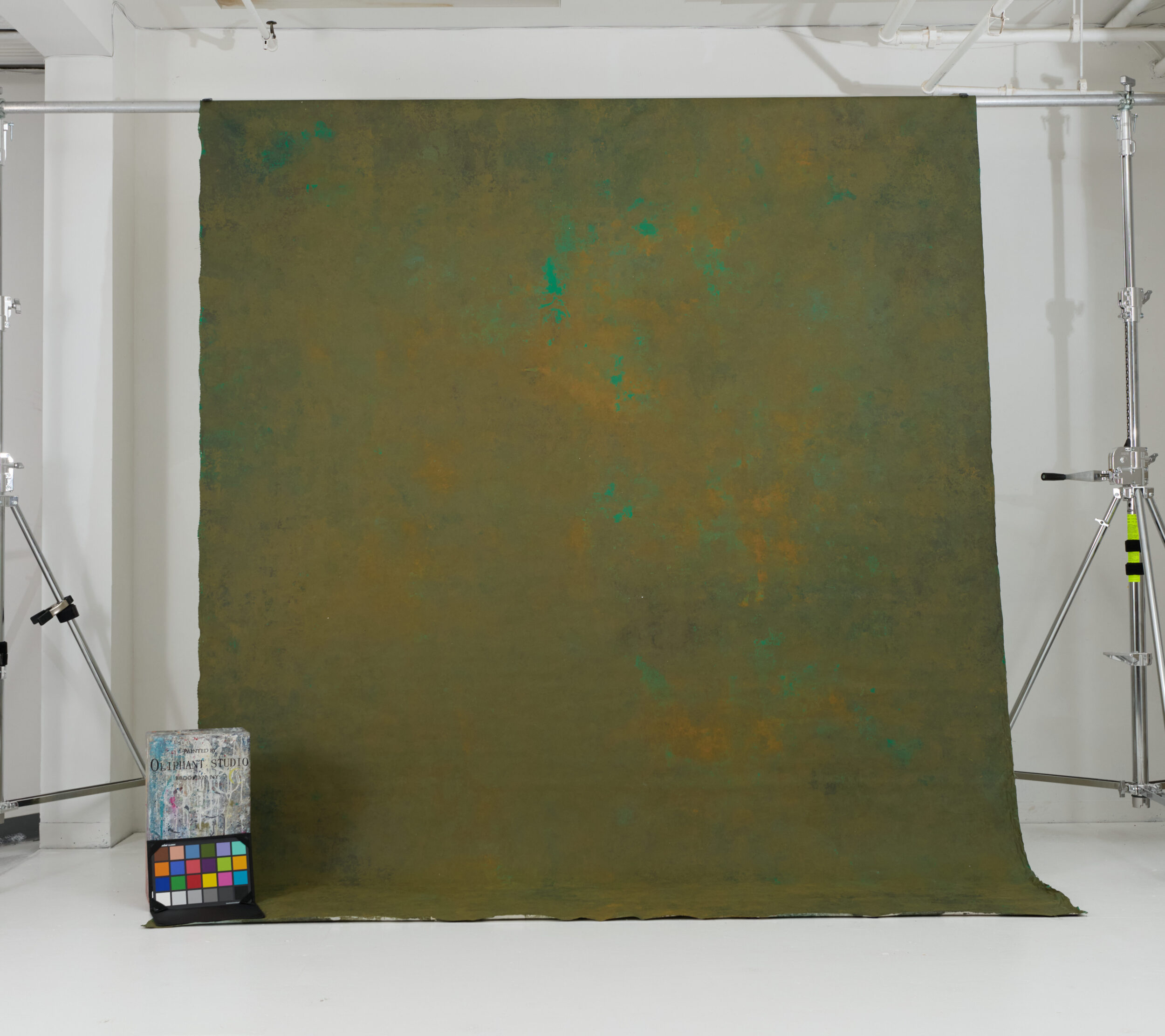 Olive green with ochre undertones, green highlights, and heavy painterly texture. Pantone Colors: 7757C, 7764C, 7560C, 6159C