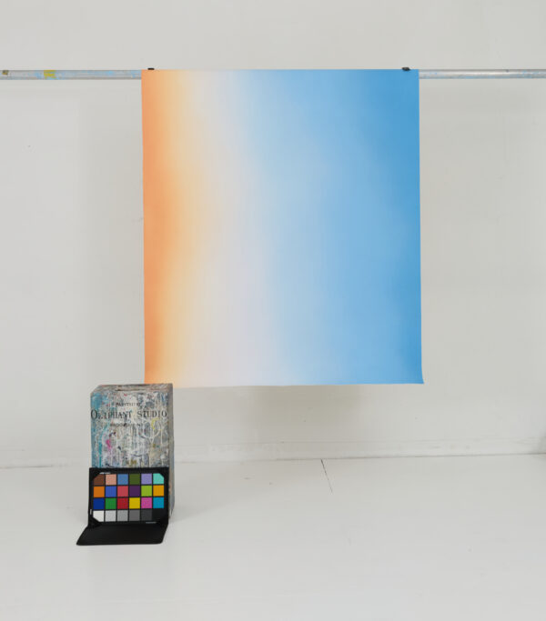 Orange to white to blue gradation. Drop can be used either direction. Pantone Colors: 7461U, 545U, 5315U, 7411U