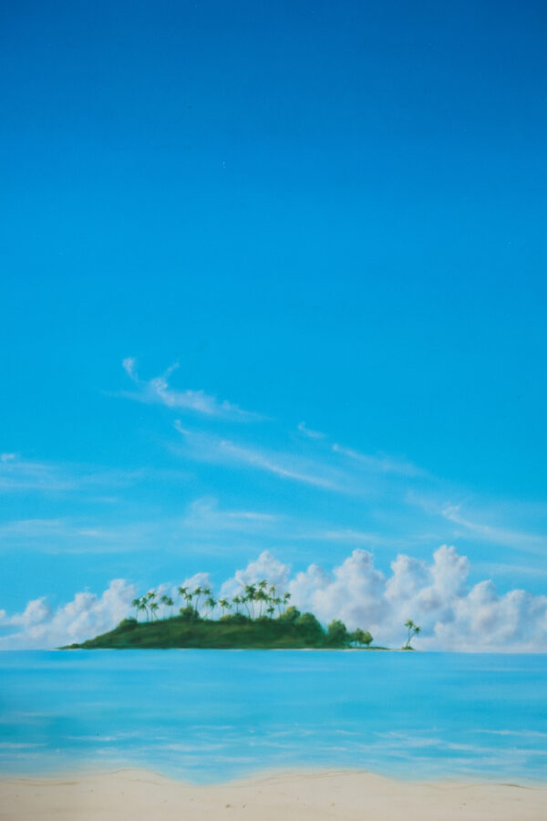 Beach, island, ocean, tropical, sand, palm trees.