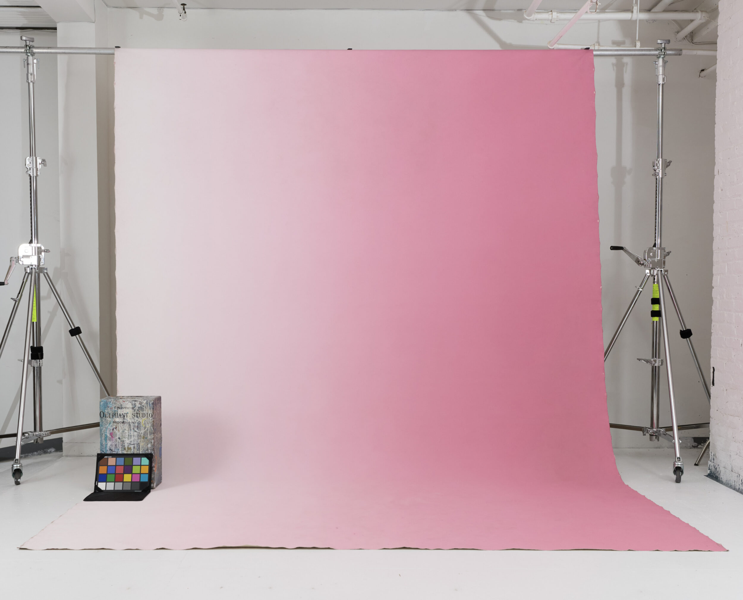 Pink to white gradation. Blend transition. Pantone Color: 2044U. Versatile gradient design — can be hung vertically or horizontally to suit your vision. Shown here in a horizontal orientation.