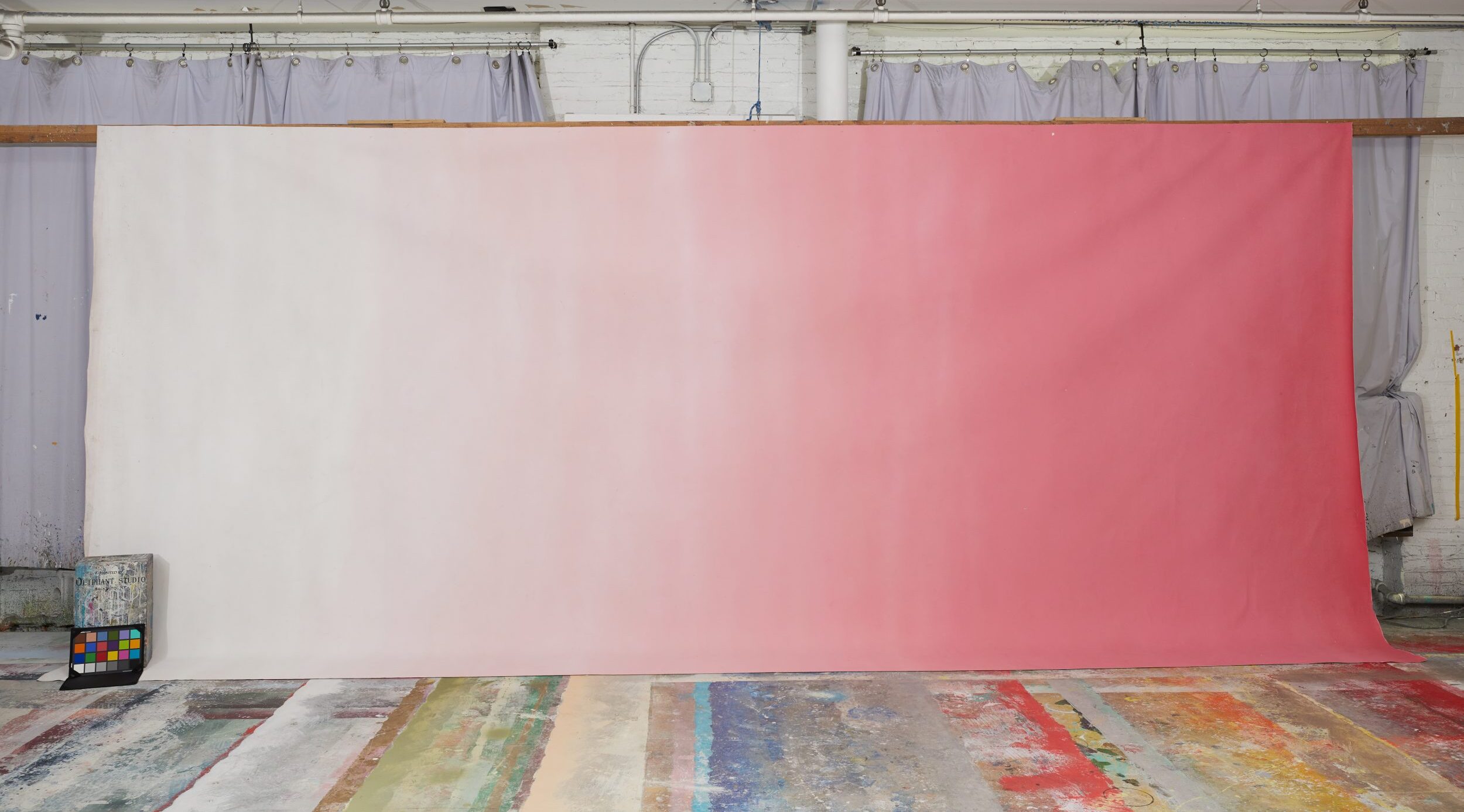 Soft white to a light pink to a deeper pink coral gradation. Inherent age texture. Pantone Color: 213U, 702U, 5025U