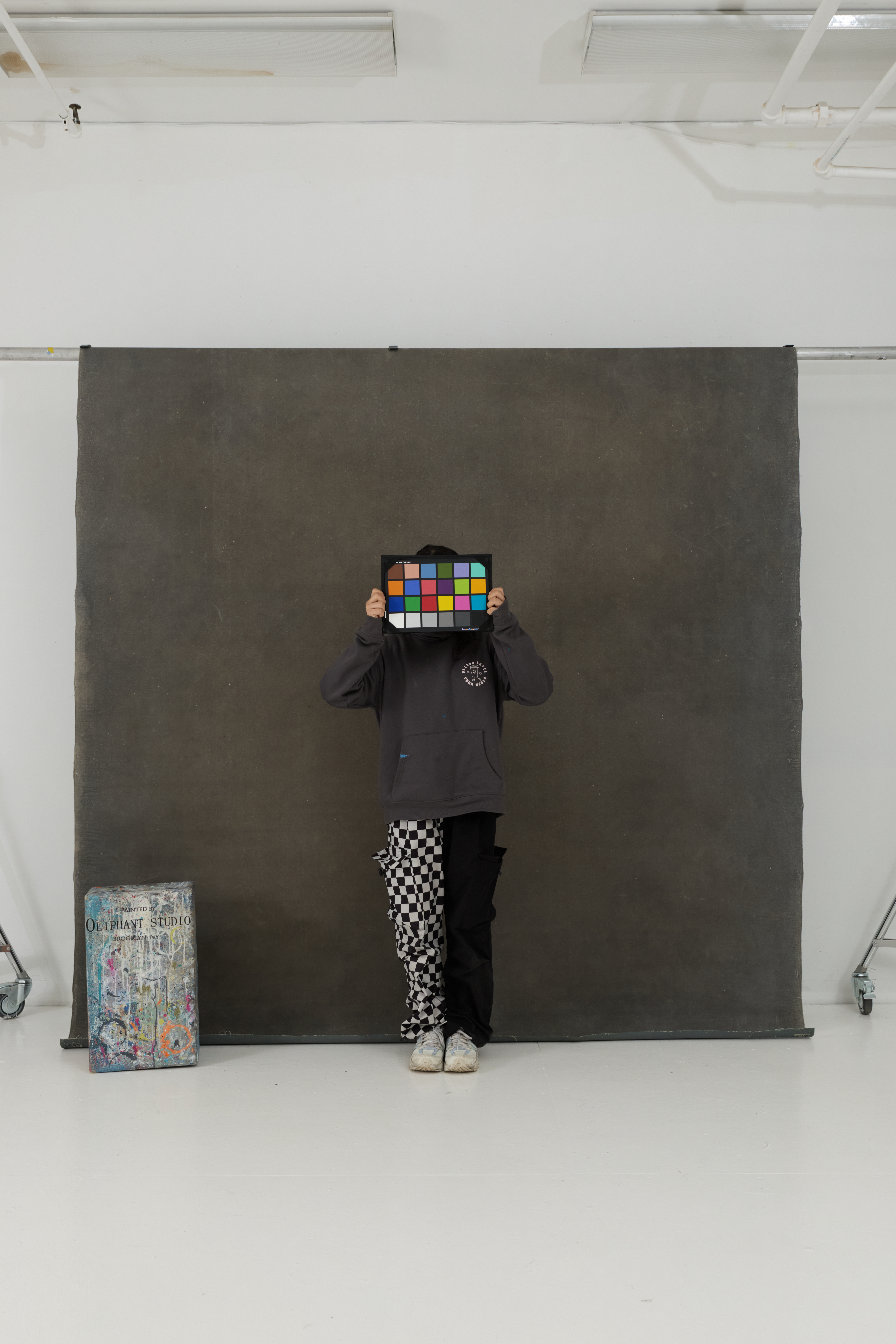 Warm grey with worn texture. Pantone Colors: 419U, 2322U
